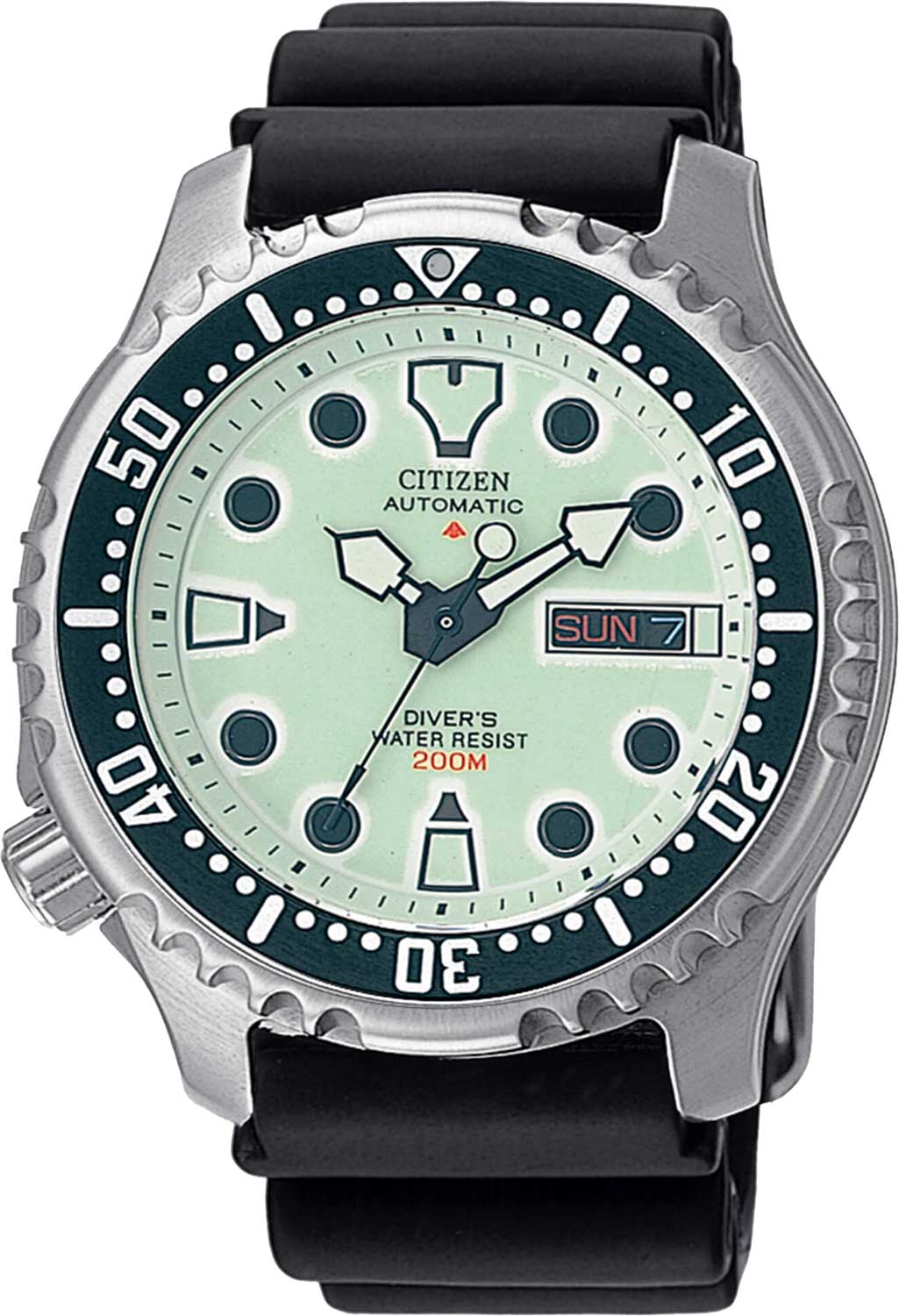 Promaster Diver. Сертифицированные часы для дайвинга (ISO 6425). В механизме 21 камень, частота 21600 полуколебаний в час. Запас хода 42 часа.