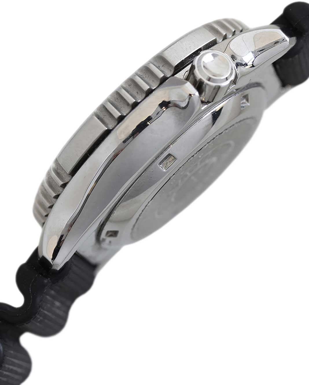 Безель вращается в одном направлении. Завинчивающаяся заводная головка с защитой расположена слева в положении 8 часов, что обеспечивает комфортное ношение на правой руке. Завинчивающаяся задняя крышка. Ремешок с классической застежкой.