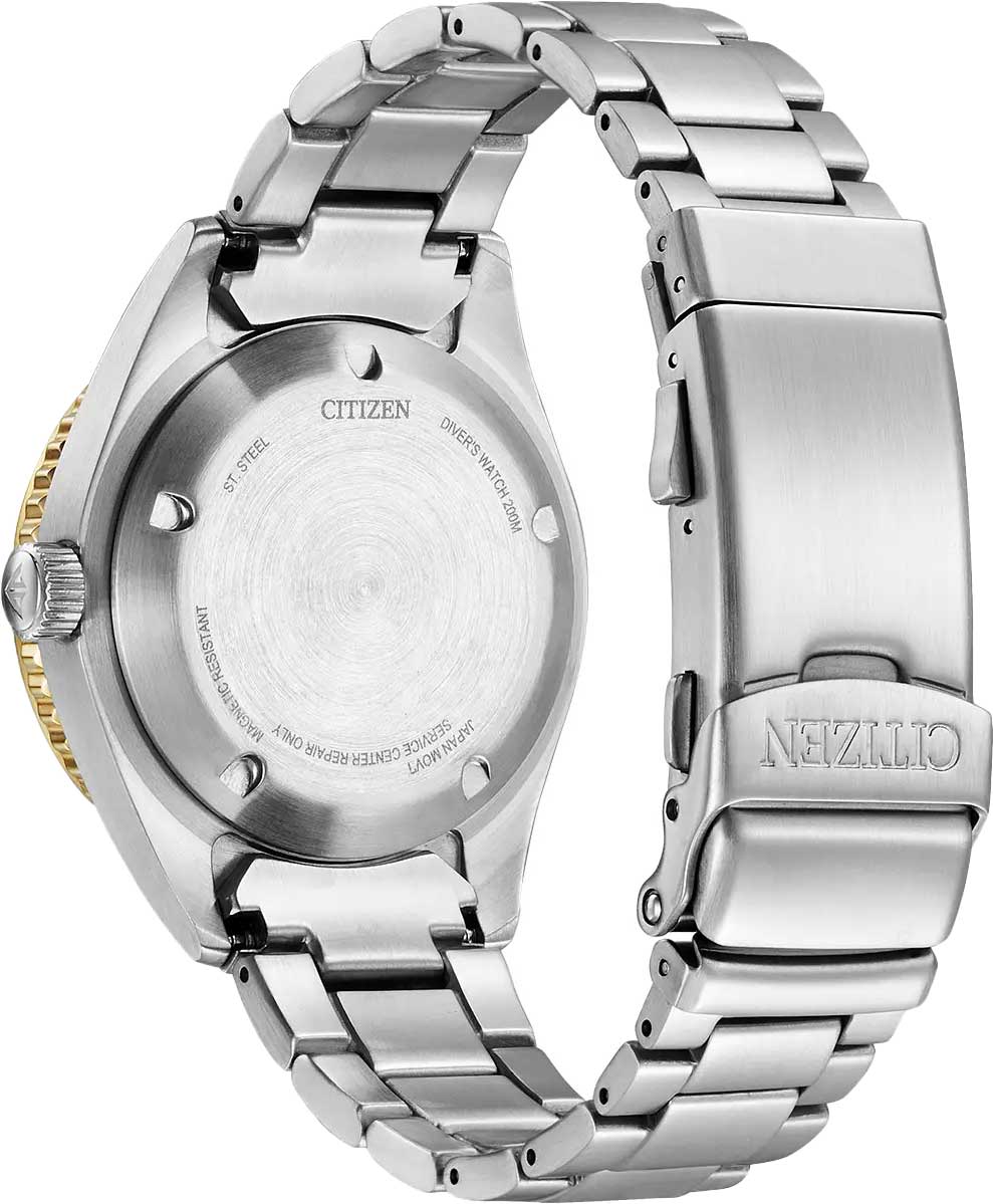 Дайверские часы станут верным спутником в вашей энергичной и спортивной жизни. Promaster Marine. Сертифицированные часы для дайвинга. В механизме 21 камень. Запас хода 40 часов. Циферблат с метками в виде штрихов. Окошко даты и дня недели. Безель вращается в одном направлении. Завинчивающиеся заводная головка и задняя крышка. Браслет с раскладывающейся застежкой. Застежка с системой блокировки.