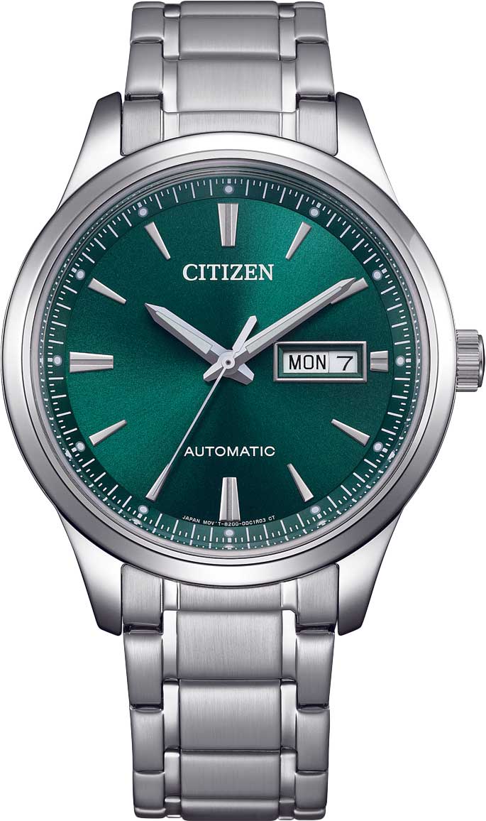 Циферблат с метками в виде штрихов выполнен по технологии Sunray (солнечные лучи). Окошко даты и дня недели находится в положении 3 часа. Прозрачная задняя крышка. Браслет с раскладывающейся застежкой.