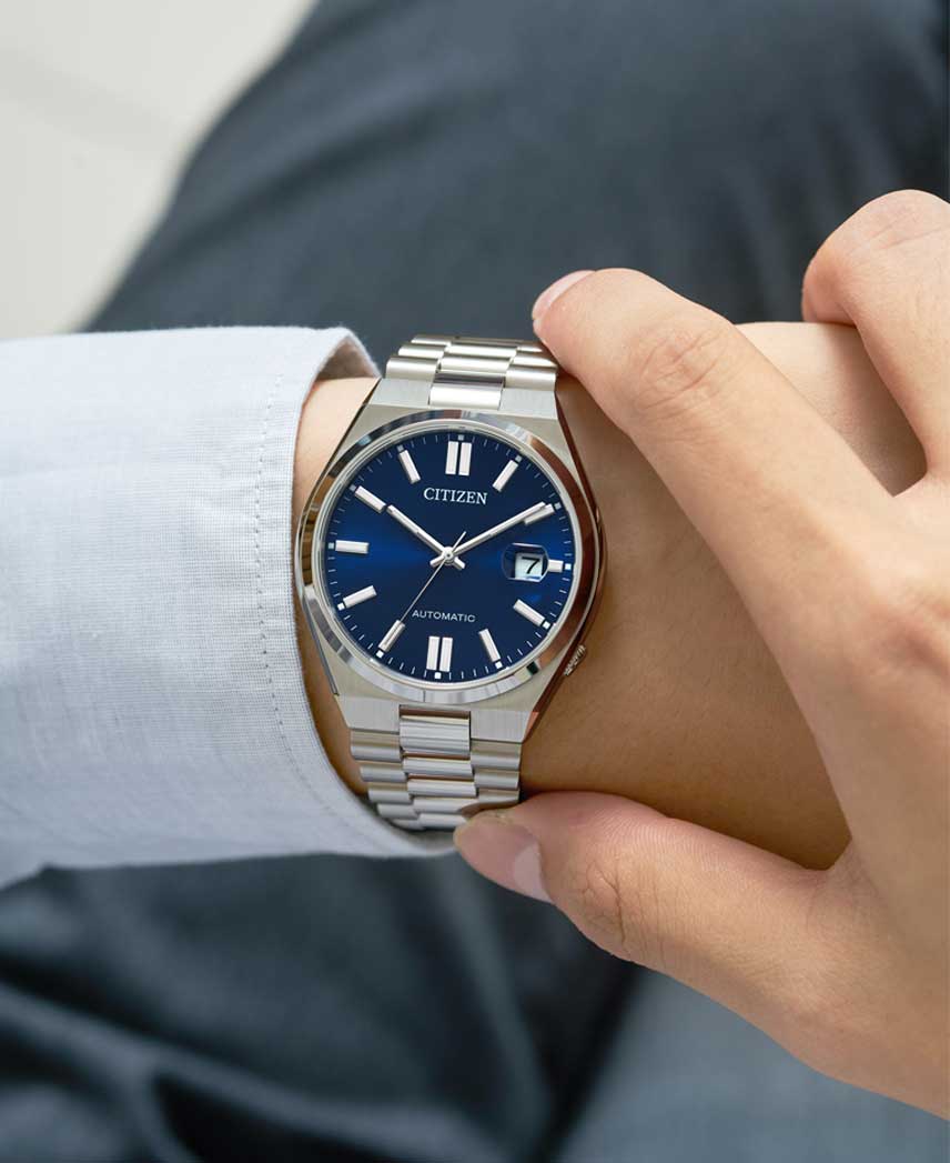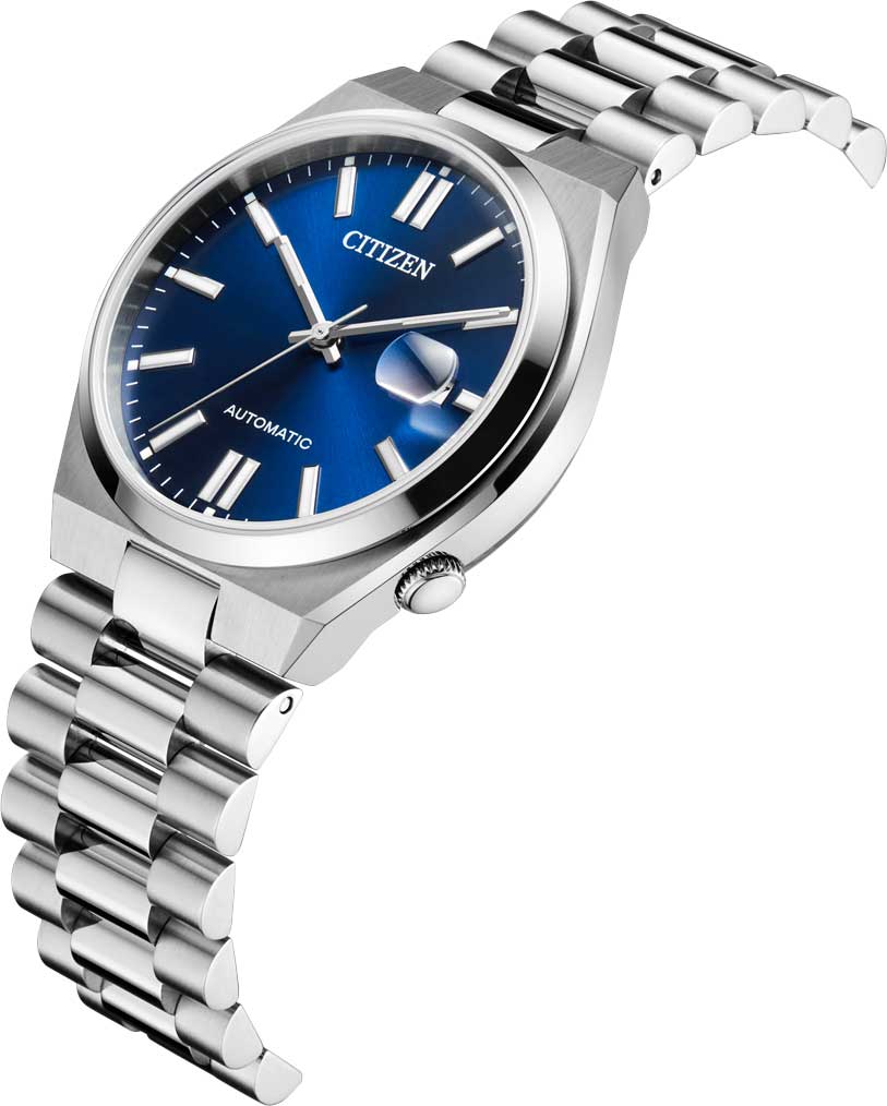 Коллекция Citizen Automatic представляет собой идеальное сочетание классического и современного дизайна, которое понравится как людям, придерживающимся стиля модерн, так и ценителям изысканных часов. Tsuyosa. В механизме 21 камень, частота 21600 полуколебаний в час. Запас хода 42 часа. Циферблат с метками в виде штрихов выполнен по технологии Sunray (солнечные лучи). Окошко даты с увеличительным стеклом находится в положении 3 часа. Рифленая заводная головка находится в положении 4 часа. Завинчивающаяся прозрачная задняя крышка. Браслет с раскладывающейся застежкой.