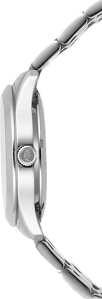 Циферблат с метками в виде штрихов и двух римских цифр выполнен по технологии Sunray (солнечные лучи). Завинчивающаяся прозрачная задняя крышка. Браслет с раскладывающейся застежкой.