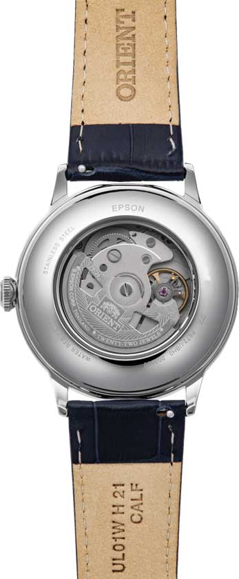 Метки в виде штрихов и римских цифр. Окошко даты находится в положении 3 часа. Рифленая заводная головка. Прозрачная задняя крышка. Ремешок с классической застежкой и системой быстрой замены.
