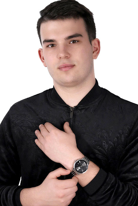 Простота и изысканность - жирные римские цифры и чистый циферблат. Будничные механические наручные часы. В механизме 22 камня, частота 21600 полуколебаний в час. Запас хода 40 часов. Круглый стальной корпус с минеральным стеклом. Узкие мечевидные стрелки в стиле Sword. Метки в виде римских цифр и штрихов. Окошко даты находится в положении 3 часа. Рифленая заводная головка. Завинчивающаяся прозрачная задняя крышка. Надежный стальной браслет с раскладывающейся застежкой.