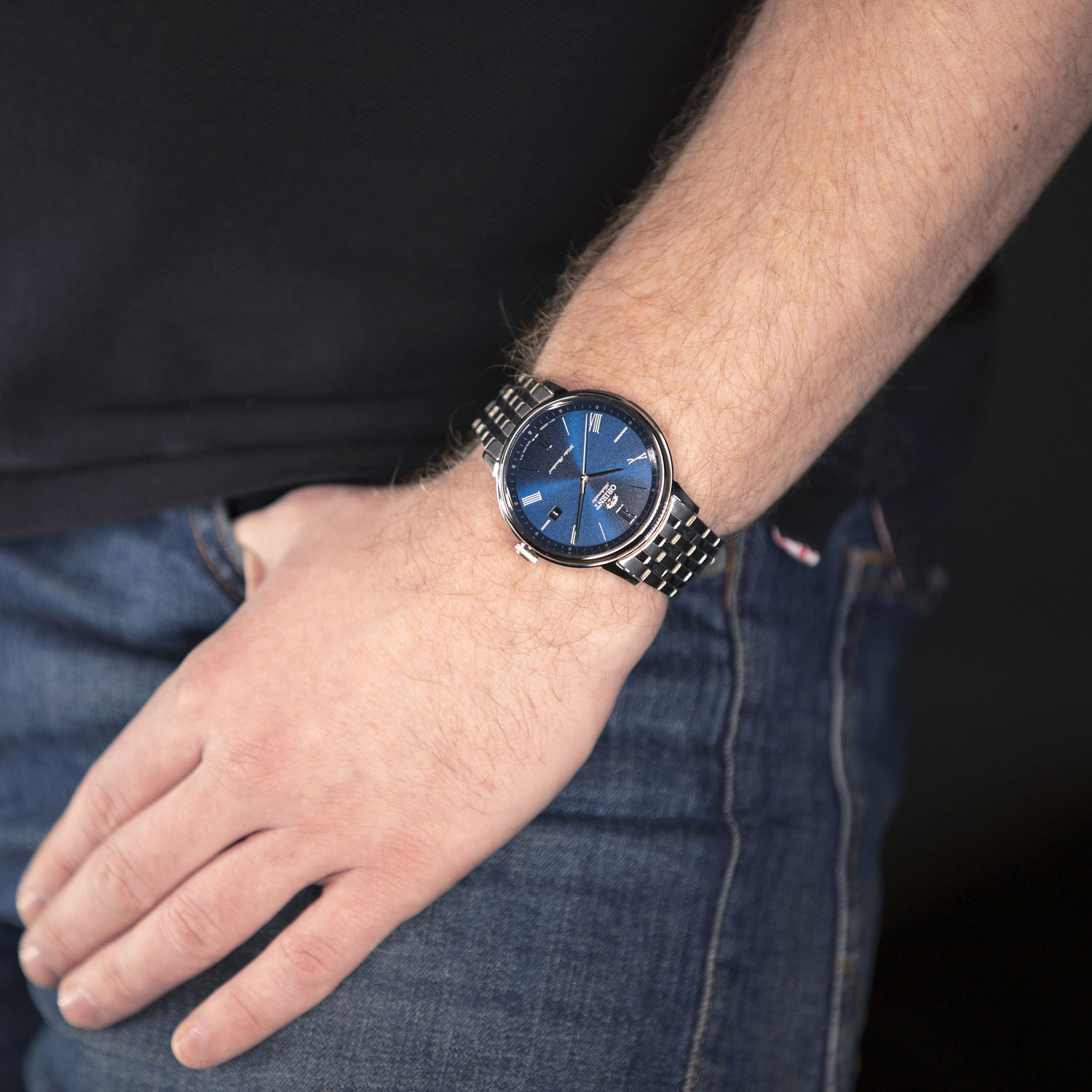 Простота и изысканность - жирные римские цифры и чистый циферблат. Будничные механические наручные часы. В механизме 22 камня, частота 21600 полуколебаний в час. Запас хода 40 часов. Круглый стальной корпус с минеральным стеклом. Узкие мечевидные стрелки в стиле Sword. Метки в виде римских цифр и штрихов. Окошко даты находится в положении 3 часа. Рифленая заводная головка. Завинчивающаяся прозрачная задняя крышка. Надежный стальной браслет с раскладывающейся застежкой.