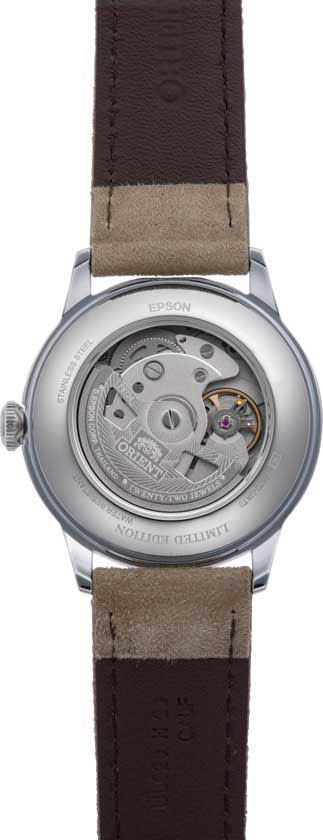 Bambino 7. Лимитированная серия. В механизме 22 камня, частота 21600 полуколебаний в час. Запас хода 40 часов. Возможность ручного завода. Функция stop-second. Циферблат с метками в виде штрихов. Окошко даты находится в положении 3 часа. Прозрачная задняя крышка. Ремешок с классической застежкой.