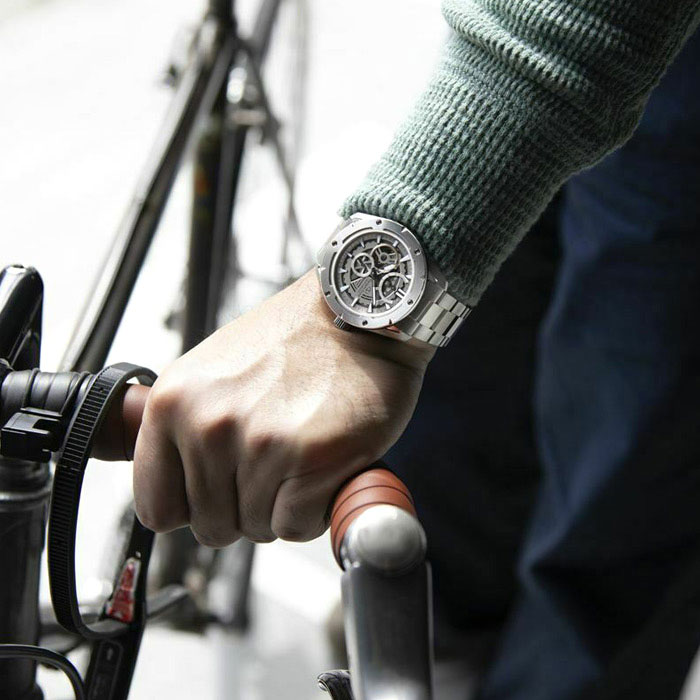 Модель Avant-Garde Skeleton с современным стильным дизайном является эволюцией модели Classic Skeleton. Avant-Garde Skeleton. Оригинальные мужские наручные скелетонизированные часы. В механизме 24 камня, частота 21600 полуколебаний в час. Ретроградный указатель запаса хода до 50 часов. Возможность ручного завода. Функция stop-second. Защищены от магнитных полей (до 4800 А/м). Секундная стрелка вынесена на отдельный циферблат. Безель украшен стильными винтами. Метки в виде штрихов. Рифленая заводная головка. Завинчивающаяся прозрачная задняя крышка с минеральным стеклом. Надежный стальной браслет с раскладывающейся застежкой.