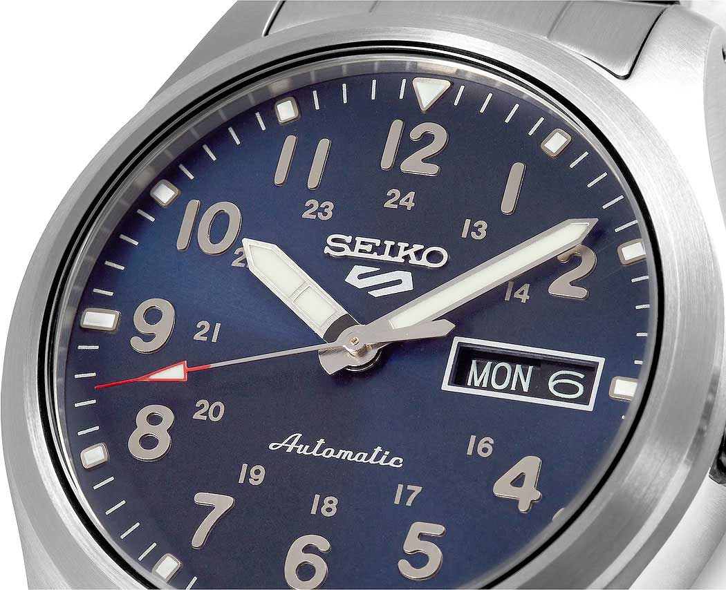 Эти от Seiko представляют собой идеальное сочетание японской точности и современного дизайна. 5 Sports Field. Мужские часы. В механизме 24 камня, частота 21600 полуколебаний в час. Запас хода 41 час. Функция stop-second. Возможность ручного завода. Защищены от магнитных полей (до 4800 А/м). 12-ти и 24-х часовой формат времени. Циферблат с метками в виде арабских цифр выполнен по технологии Sunray (солнечные лучи). Стрелки и метки с фирменным люминесцентным покрытием LumiBrite, которое светится в темноте после непродолжительной подзарядки на свету. Окошко даты и дня недели находится в положении 3 часа. Рифленая заводная головка. Завинчивающаяся прозрачная задняя крышка. Браслет с тройной раскладывающейся застежкой. Застежка с системой блокировки.