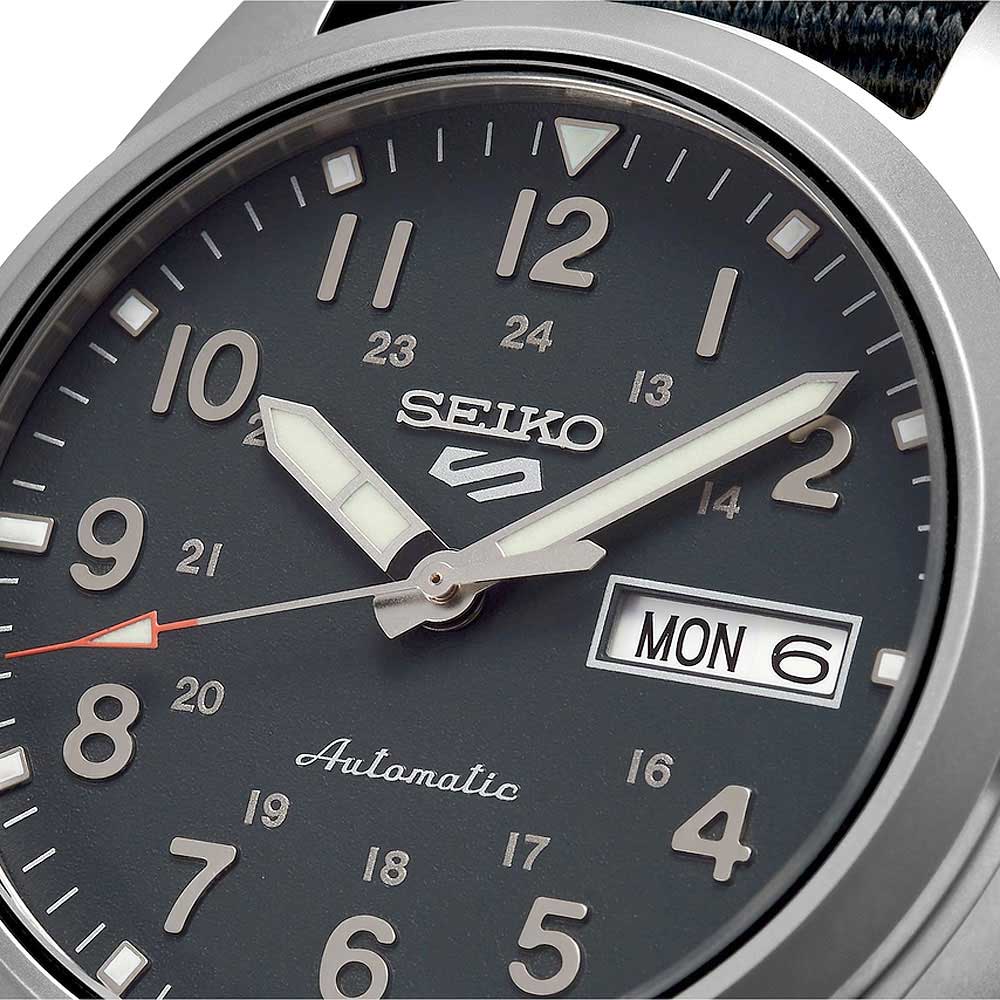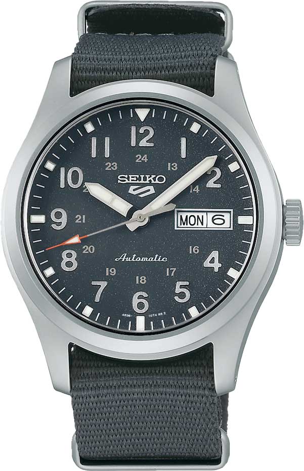 Эти от Seiko представляют собой идеальное сочетание японской точности и современного дизайна. 5 Sports Field. Мужские часы. В механизме 24 камня, частота 21600 полуколебаний в час. Запас хода 41 час. Функция stop-second. Возможность ручного завода. Защищены от магнитных полей (до 4800 А/м). 12-ти и 24-х часовой формат времени. Циферблат с метками в виде арабских цифр. Стрелки и метки с фирменным люминесцентным покрытием LumiBrite, которое светится в темноте после непродолжительной подзарядки на свету. Окошко даты и дня недели находится в положении 3 часа. Рифленая заводная головка. Завинчивающаяся прозрачная задняя крышка. Ремешок с классической застежкой.
