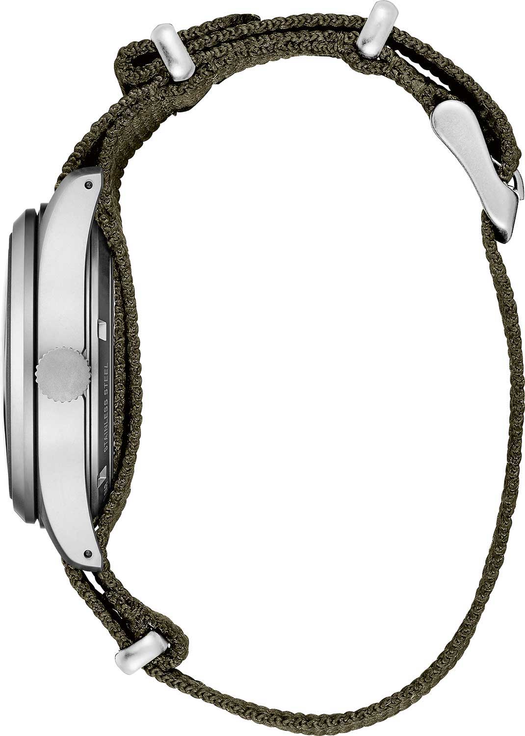 покрытием LumiBrite, которое светится в темноте после непродолжительной подзарядки на свету. Окошко даты и дня недели находится в положении 3 часа. Рифленая заводная головка. Завинчивающаяся прозрачная задняя крышка. Ремешок с классической застежкой.