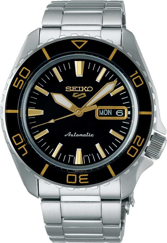 Надежные часы из коллекции 5 Sports в оригинальном корпусе из нержавеющей стали для уверенных в себе мужчин. 5 Sports SKX. Мужские наручные часы дизайн которых вдохновлен популярной серией Seiko 5 Sports SNZH. В механизме 24 камня, частота 21600 полуколебаний в час. Запас хода 41 час. Функция stop-second. Возможность ручного завода. Защищены от магнитных полей (до 4800 А/м). Циферблат с метками в виде штрихов. Стрелки и метки с фирменным люминесцентным покрытием LumiBrite, которое светится в темноте после непродолжительной подзарядки на свету. Двойное окошко даты и дня недели находится в положении 3 часа. Безель вращается в одном направлении. Рифленая заводная головка с защитой находится в положении 4 часа. Завинчивающаяся прозрачная задняя крышка. Надежный стальной браслет с тройной раскладывающейся застежкой. Застежка с системой блокировки.