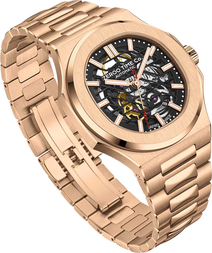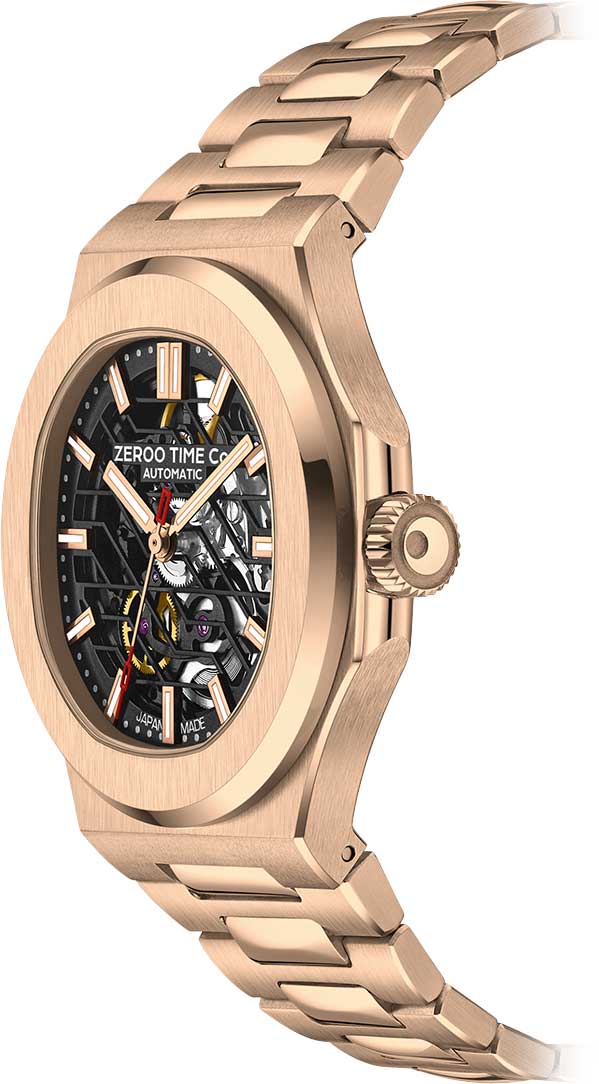 Циферблат с метками в виде штрихов защищен прочным сапфировым стеклом. Заводная головка с защитой. Прозрачная задняя крышка с сапфировым стеклом. Браслет с раскладывающейся застежкой.