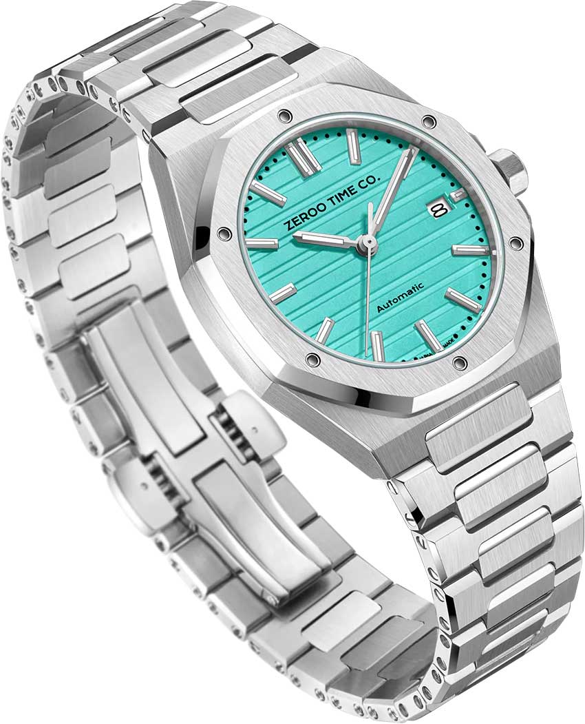 Циферблат с метками в виде штрихов защищен прочным сапфировым стеклом. Окошко даты находится в положении 3 часа. Заводная головка с защитой. Браслет с раскладывающейся застежкой.
