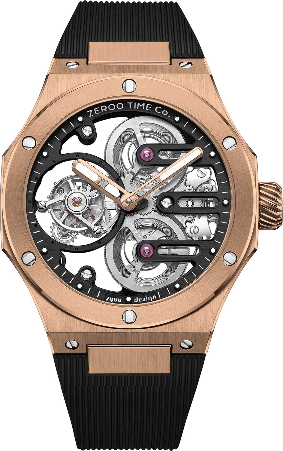 T8 The Orion Full Skeleton Tourbillon. Лимитированная серия — 1000 экземпляров. Скелетонизированные часы с турбийоном. В механизме 20 камней, частота 28800 полуколебаний в час. Запас хода 60 часов. Стальной корпус украшен прозрачными вставками из сапфирового стекла.