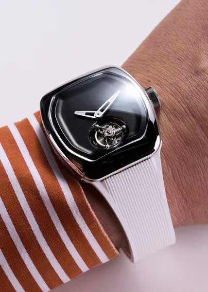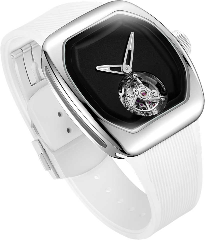 T9-01 UFO Automatic Tourbillon. Мужские часы с турбийоном. В механизме 35 камней, частота 28800 полуколебаний в час. Запас хода 60 часов. Стальной корпус украшен прозрачными вставками.