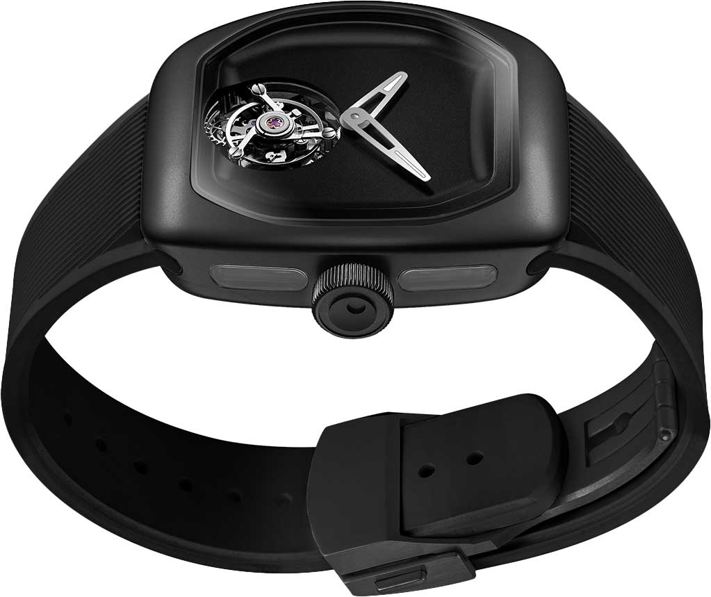 T9-01 UFO Automatic Tourbillon. Мужские часы с турбийоном. В механизме 35 камней, частота 28800 полуколебаний в час. Запас хода 60 часов. Стальной корпус украшен прозрачными вставками.