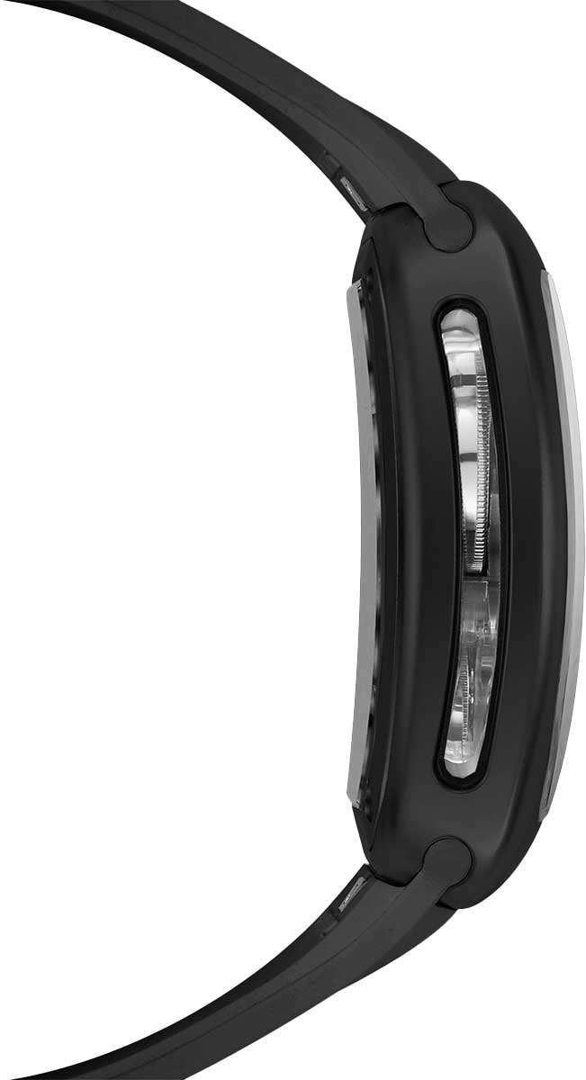 Циферблат защищен прочным сапфировым стеклом. Прозрачная задняя крышка с сапфировым стеклом крепится на 4-х винтах. Рифленая заводная головка. Ремешок с раскладывающейся застежкой.