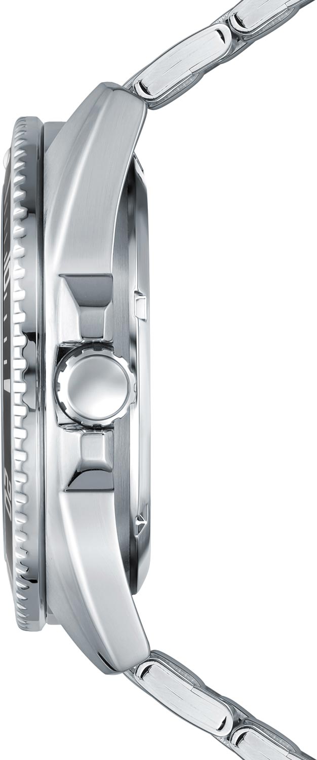 Standard. Необритовое светонакопительное покрытие обеспечивает длительное послесвечение в темноте даже после кратковременного нахождения на свету. Метки в виде точек и штрихов. Окошко даты находится в положении 3 часа. Безель вращается в одном направлении. Заводная головка с защитой. Задняя крышка с винтовым фиксатором. Батарейка рассчитана на 3 года. Водонепроницаемость 20 Бар в соответствии с ISO 2281. Браслет с тройной раскладывающейся застежкой, расстегиваемой одним касанием. Предохранительная защелка на браслете препятствует случайному расстегиванию.