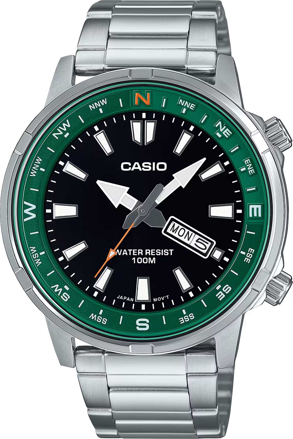 Современный дизайн часов впишется в любой образ, а наличие компаса подтолкнет на новые приключения. Standard. Мужские часы. Циферблат с метками в виде штрихов. Окошко даты и дня недели находится в положении 4 часа. Вращающийся внутренний безель со шкалой компаса. Заводная головка с защитой находится в положении 4 часа. Батарейка рассчитана на 3 года. Браслет с тройной раскладывающейся застежкой, расстегиваемой одним касанием.