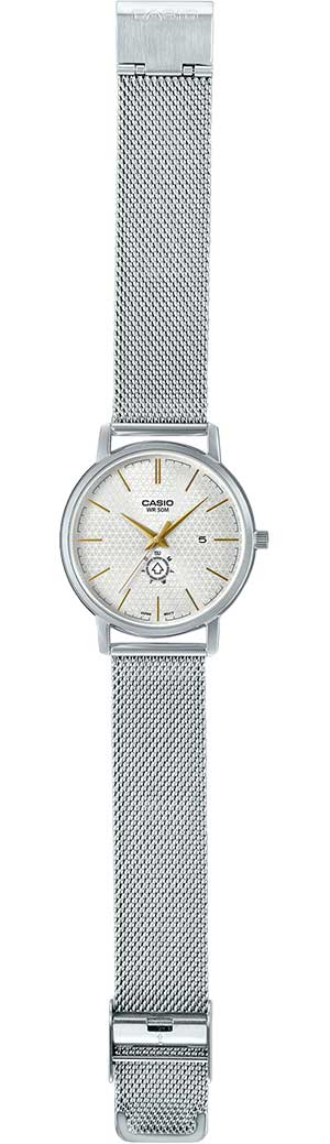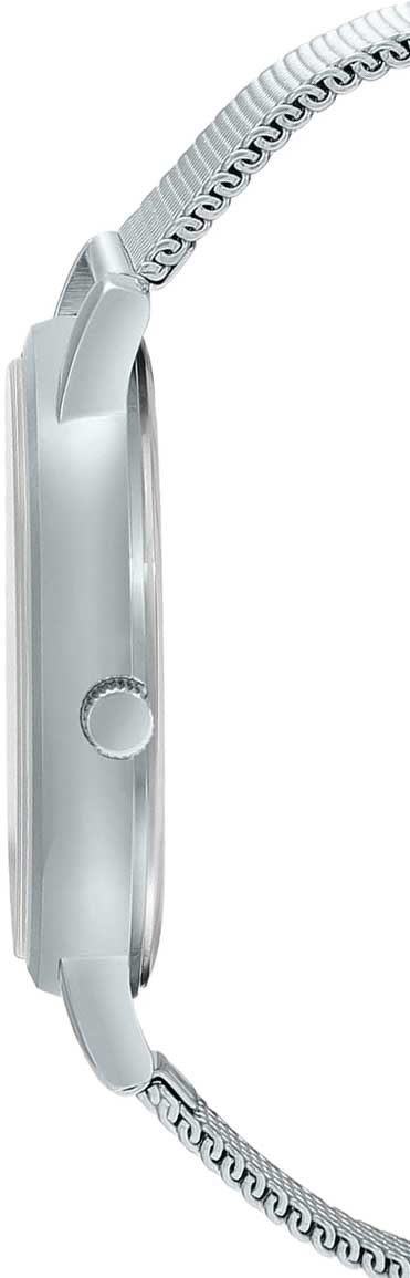 Аккуратный дизайн и надежность этих часов оценит каждый, кто ценит практичные аксессуары. Standard. Мужские часы. Циферблат с метками в виде штрихов выполнен по технологии Sunray (солнечные лучи). Окошко даты находится в положении 3 часа. Окошко дня недели находится в положении 6 часов. Батарея рассчитана на 3 года. Браслет миланского плетения с регулируемой застежкой.