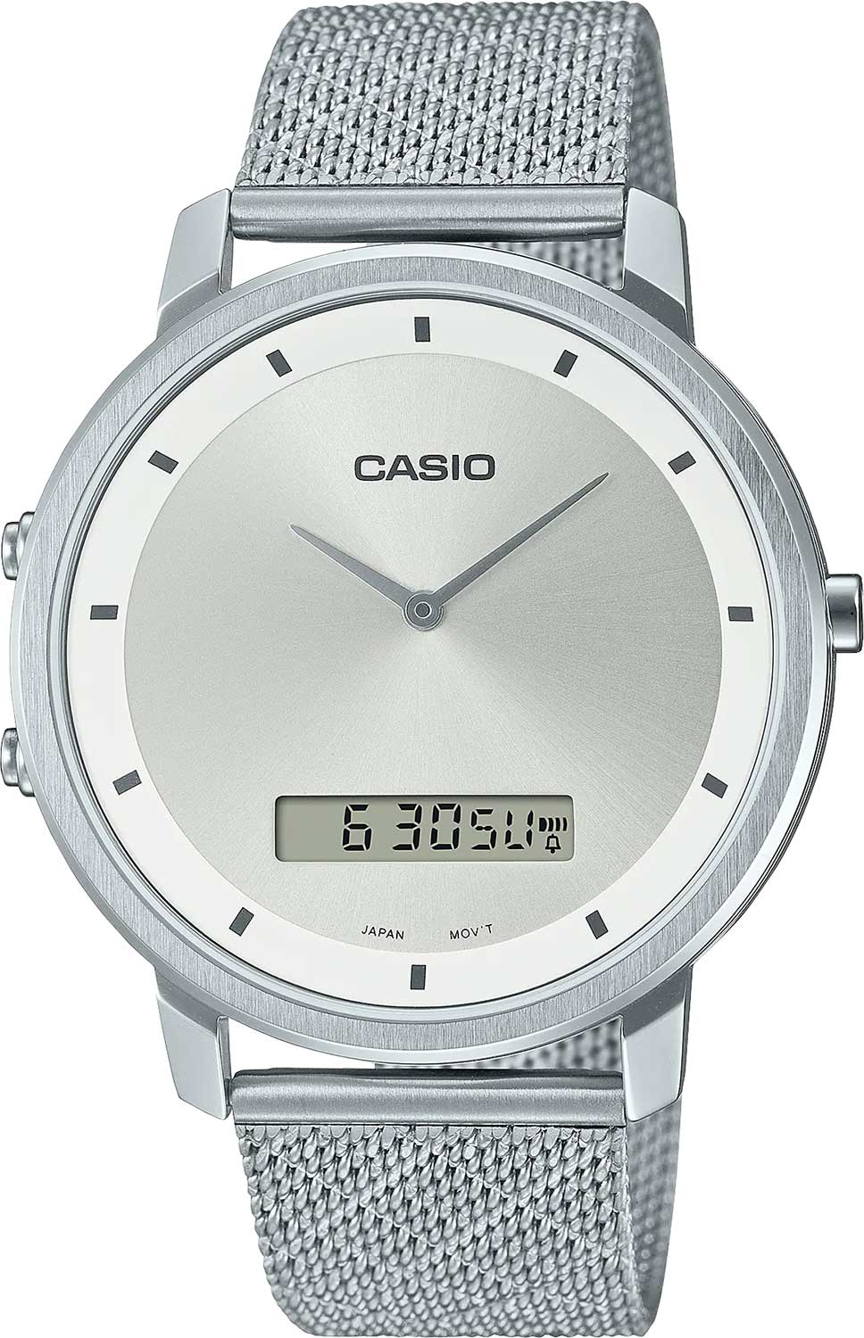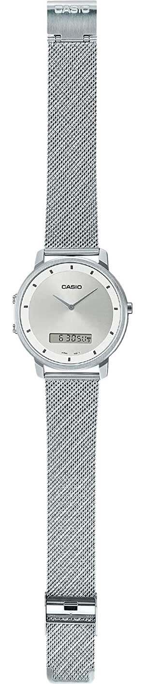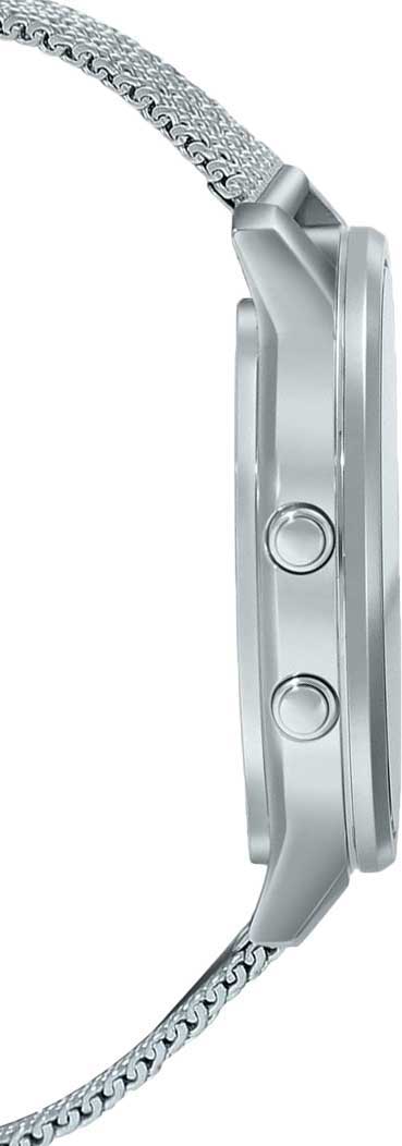 Удобные часы с дополнительными функциями - отличный вариант повседневного аксессуара. Standard. Мужские аналогово-цифровые часы. 12 и 24-часовой формат времени. Секундомер с точностью показаний 1/100с и временем измерения 60мин. Второй часовой пояс. Циферблат с метками в виде штрихов выполнен по технологии Sunray (солнечные лучи). Задняя крышка крепится на 4-х винтах. Батарея рассчитана на 3 года. Браслет миланского плетения с регулируемой застежкой.