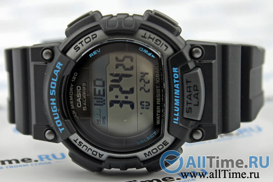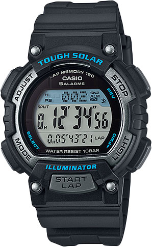 Многофункциональные часы с секундомером, таймером и памятью на 120 кругов отлично подойдут для занятий спортом. Solar-Powered Digital. Унисекс. Питание от солнечной энергии, индикатор заряда батареи. Циферблат подсвечивается светодиодом. Функция автоматического сохранения энергии. Время работы аккумулятора без подзарядки - 13 месяцев, при включенной функции сохранения энергии - 38 месяцев. Секундомер с точностью показаний 1/100с и временем измерения 100ч. Сплит-хронограф. Память на 120 этапов. Номер и лучшее время этапа. Два таймера обратного отсчета времени от 5с до 100мин с устанавливаемым количеством повторов от 1 до 10. Мировое время. 12-ти и 24-х часовой формат времени. Функция включения/отключения звука.
