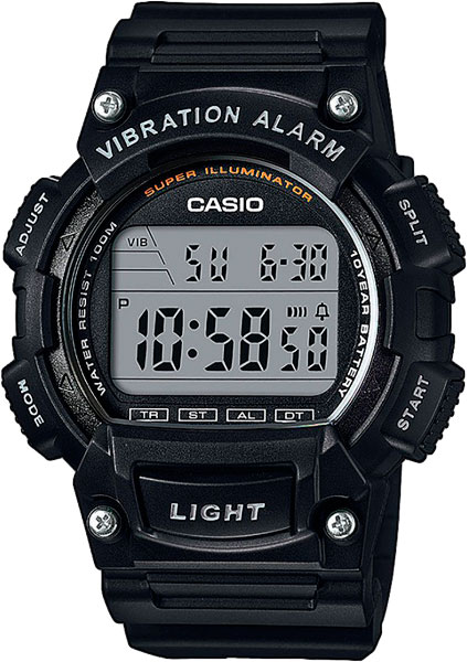 Часы со спортивной ориентацией отлично подойдут для занятий на беговой дорожке. Standard Digital. Циферблат подсвечивается ярким светодиодом. Вибро-уведомление напомнит о важных встречах, не издавая громкий звуковой сигнал. Второй часовой пояс. 12-ти и 24-х часовой формат времени. Секундомер с точностью показаний 1/100с и временем измерения 24ч. Сплит-хронограф. Таймер обратного отсчета от 1мин до 24ч.