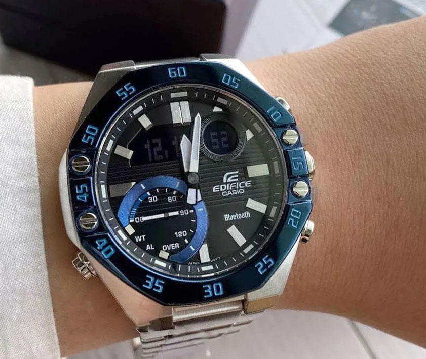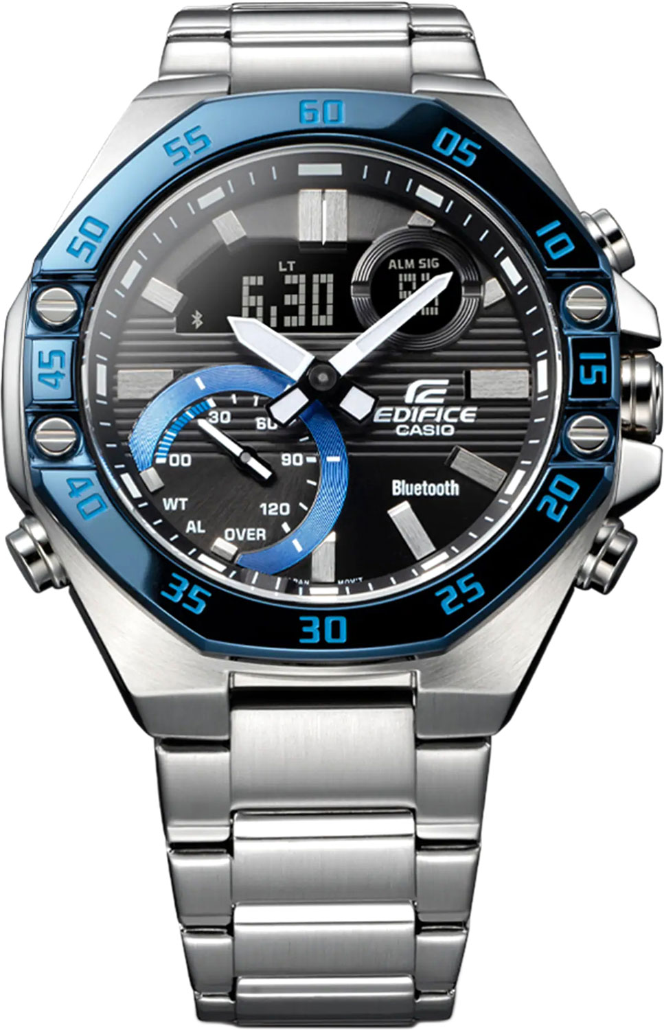 Добро пожаловать в эволюцию Speed & Intelligence - высокотехнологичная красота в стальном корпусе хронографа EDIFICE. Смелые и уверенные в себе, с выразительным дизайном восьмиугольного безеля и привлекательными цветовыми решениями, эти часы обеспечивают максимальную точность и функциональную гибкость. Подключитесь к приложению EDIFICE Connected через Bluetooth®, чтобы управлять часами без помощи кнопок и настраивать точное время, когда ваш смартфон находится рядом. Таймер расписания, разработанный с учетом потребностей гоночных команд F1TM, позволяет удобно планировать мероприятия через смартфон и получать уведомления о времени начала и окончания. Часы оснащены экономичной и долговечной подсветкой, которая загорается при простом наклоне запястья. Отличный выбор для автоспорта и заграничных путешествий.Edifice. Новинка в серии Edifice ECB. Циферблат подсвечивается ярким светодиодом. Цвет подсветки: белый. Светонакопительное покрытие Neobrite обеспечивает длительное послесвечение в темноте даже после кратковременного нахождения на свету. Мировое время – 38 городов (38 часовых поясов). Функция включения/отключения летнего времени. Секундомер с двумя разрешениями показаний: 1/1000 сек (до 1 ч) и 1/10 сек (после 1 ч) и временем измерения 24 ч. SPLIT-хронограф.Таймер обратного отсчета от 1 сек до 24 ч. Таймер