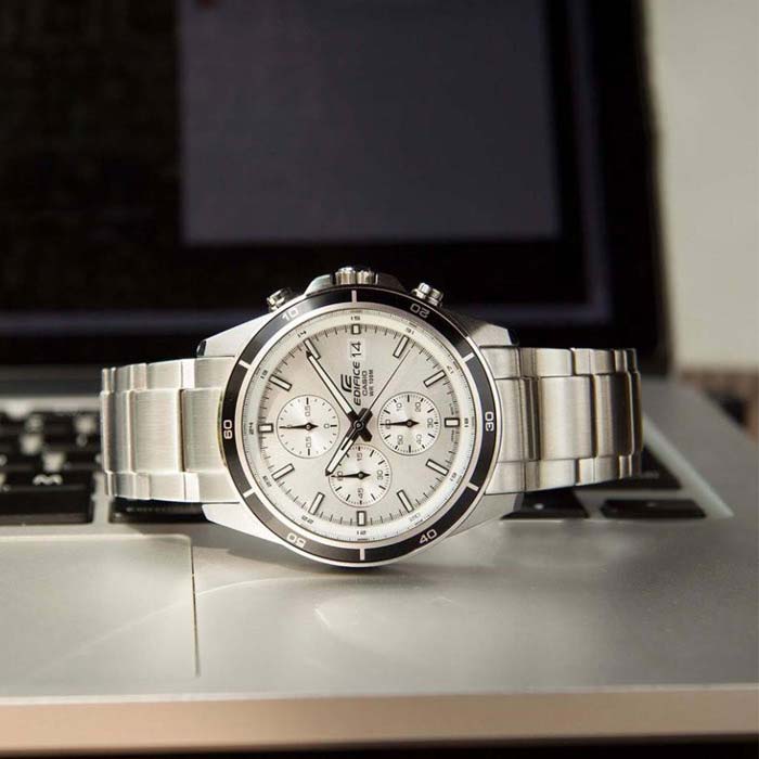 Этот стильный хронограф по достоинству оценят современные мужчины, которые отдают предпочтение практичным и функциональным вещам. Edifice. Необритовое светонакопительное покрытие обеспечивает длительное послесвечение в темноте даже после кратковременного нахождения на свету. Часы-хронограф с секундомером точностью 1/10с и временем измерения 1ч. Метки в виде штрихов. Окошко даты. Заводная головка с защитой. Задняя крышка с винтовым фиксатором. Водонепроницаемость 10 Бар в соответствии с ISO 2281. Раскладывающаяся застежка, расстегиваемая одним касанием.