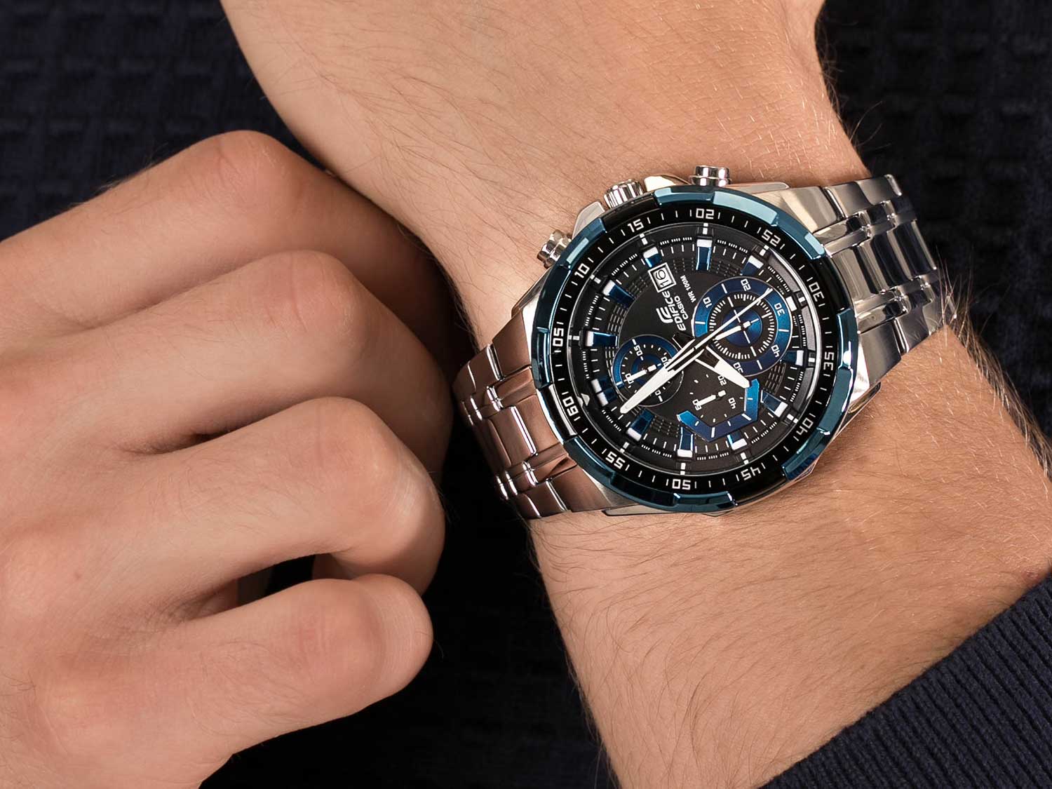 Функциональный и стильный аксессуар, дополняющий Ваш спортивный образ. Edifice. Часы-хронограф с секундомером с точностью показаний 1/10с и временем измерения 1ч. Циферблат с метками в виде штрихов. Окошко даты находится в положении 3 часа. Заводная головка с защитой. Задняя крышка с винтовым фиксатором. Батарейка рассчитана на 2 года. Браслет с тройной раскладывающейся застежкой, расстегиваемой одним касанием.