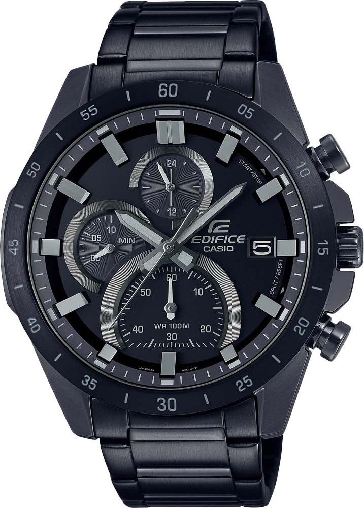 Динамичный мужской аксессуар подтолкнет вас на покорение новых высот! Edifice. Необритовое светонакопительное покрытие обеспечивает длительное послесвечение в темноте даже после кратковременного нахождения на свету. Часы-хронограф с секундомером с точностью показаний 1с и временем измерения 10мин. Окошко даты. Ретроградный указатель минутной стрелки хронографа. Задняя крышка с винтовым фиксатором. Рифленая заводная головка с защитой. Водонепроницаемость 10 Бар в соответствии с ISO 2281. Раскладывающаяся застежка, расстегиваемая одним касанием. Предохранительная защелка на браслете препятствует случайному расстегиванию.