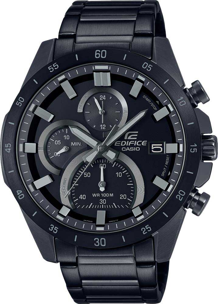 Edifice. Необритовое светонакопительное покрытие обеспечивает длительное послесвечение в темноте даже после кратковременного нахождения на свету. Часы-хронограф с секундомером с точностью показаний 1с и временем измерения 10мин. Окошко даты. Ретроградный указатель минутной стрелки хронографа. Задняя крышка с винтовым фиксатором. Рифленая заводная головка с защитой. Водонепроницаемость 10 Бар в соответствии с ISO 2281. Раскладывающаяся застежка, расстегиваемая одним касанием. Предохранительная защелка на браслете препятствует случайному расстегиванию.