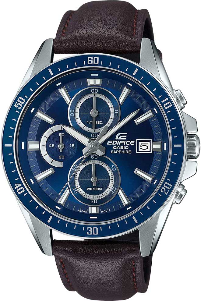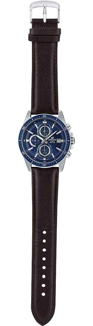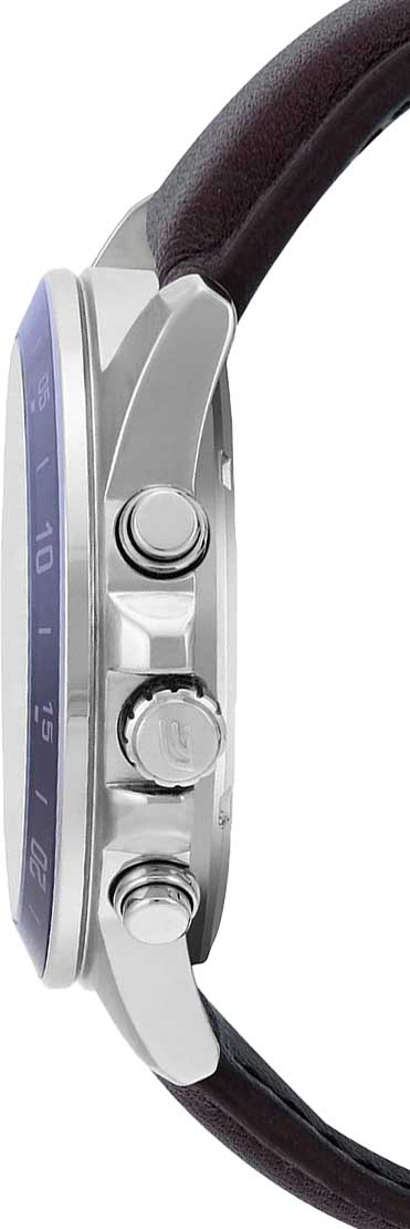 Благодаря надежному механизму и стильному дизайну эти часы отлично подойдут для повседневного общения со временем. Edifice. Часы-хронограф с секундомером. Секундомер с точностью показаний 1/10с и временем измерения 1ч. Циферблат выполнен по технологии Sunray (солнечные лучи) и защищен прочным сапфировым стеклом. Метки в виде штрихов. Окошко даты находится в положении 3 часа. Заводная головка с защитой. Батарейка рассчитана на 2 года. Ремешок с классической застежкой.