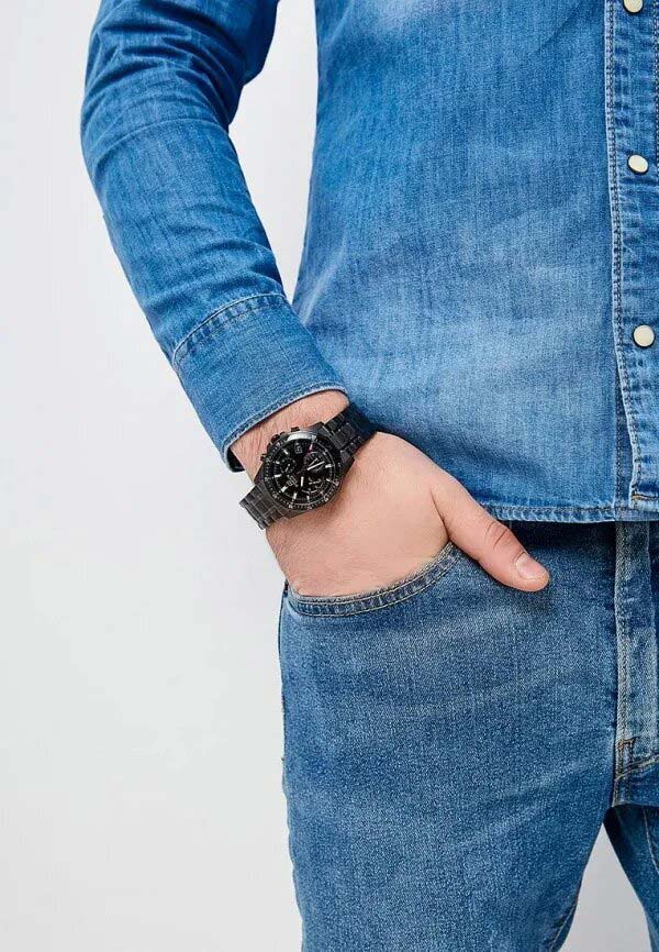 Многофункциональные и сдержанные часы в спортивном стиле станут идеальным выбором для современных мужчин. Edifice. Светонакопительное покрытие необрит продолжает светиться в темноте даже после непродолжительного пребывания на свету. Часы-хронограф с секундомером с точностью показаний 1с и временем измерения 10мин. 12-ти и 24-х часовой формат времени. Ретроградный указатель минутной стрелки хронографа. Заводная головка с защитой. Задняя крышка с винтовым фиксатором. Раскладывающаяся застежка, расстегиваемая одним касанием.