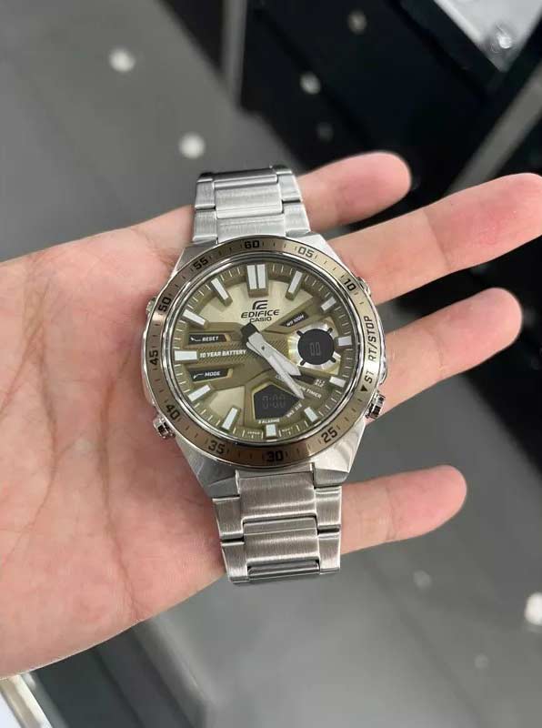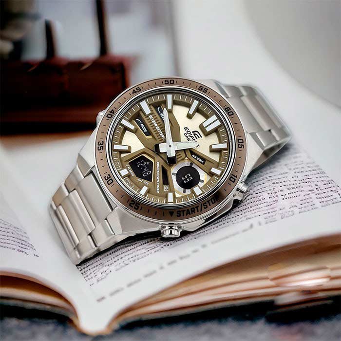 Самый практичный аксессуар, который никогда не подведет вас в вопросах времени. Edifice. Мужские часы. Необритовое светонакопительное покрытие обеспечивает длительное послесвечение в темноте даже после кратковременного нахождения на свету. 12-ти и 24-х часовой формат времени. Секундомер с точностью показаний 1/100с и временем измерения 24ч. SPLIT-хронограф. Таймер обратного отсчета от 1мин до 24ч. Мировое время – 30 городов (29 часовых поясов), возможность включения/отключения летнего времени. Записная книжка на 30 ячеек памяти для записи имен и телефонных номеров, каждая запись может включать в себя текст из 8 букв и 16 цифр. Циферблат с метками в виде штрихов выполнен по технологии Sunray (солнечные лучи). Водонепроницаемость 10 Бар в соответствии с ISO 2281. Батарея рассчитана на 10 лет. Браслет с тройной раскладывающейся застежкой, расстегиваемой одним касанием.