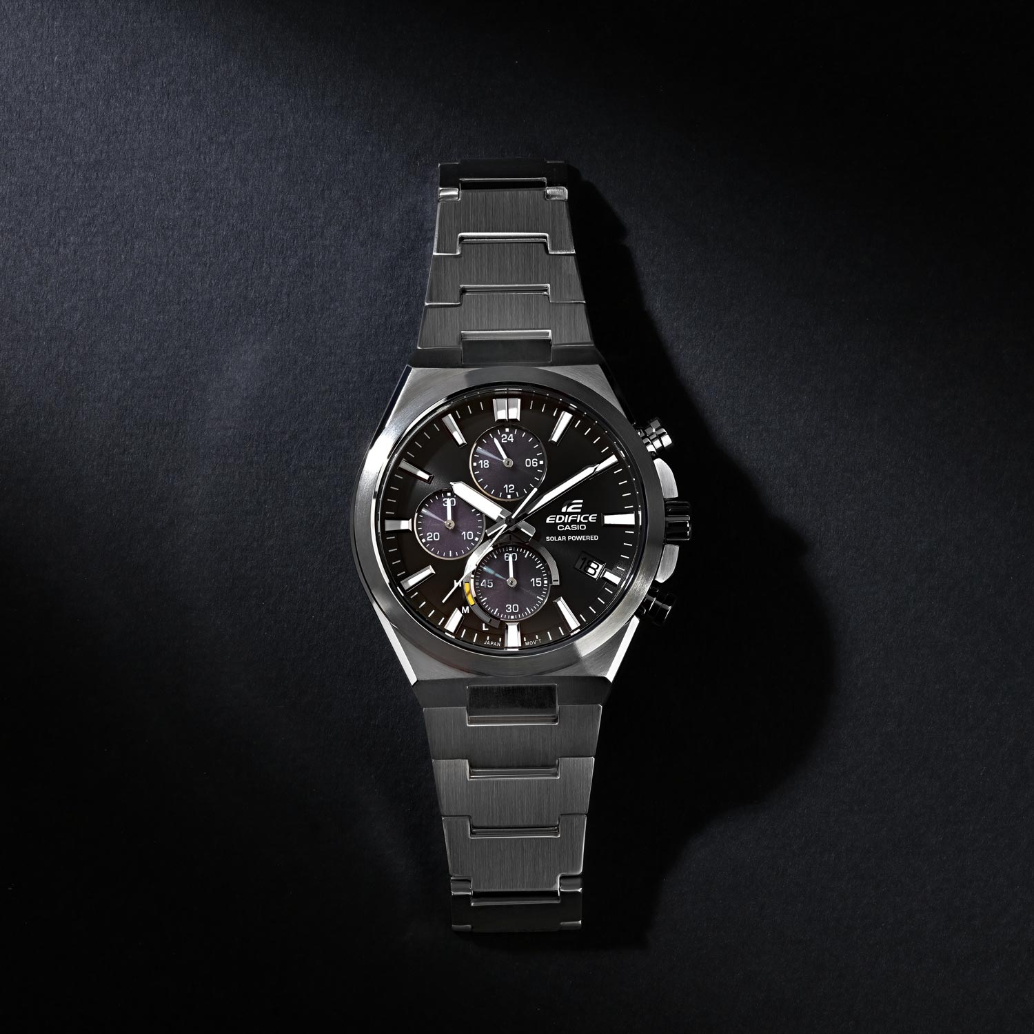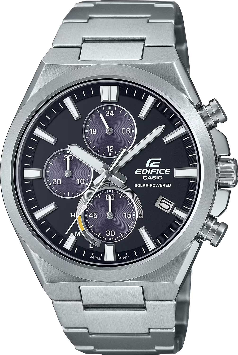 Дизайн этого хронографа Edifice по достоинству оценят поклонники спортивного стиля. Edifice. Питание от солнечной энергии, индикатор уровня зарядки батареи. Время работы аккумулятора без подзарядки приблизительно 5 месяцев. Часы-хронограф с секундомером с точностью показаний 1с и временем измерения 30мин. 12-ти и 24-х часовой формат времени. Окошко даты находится в положении 4 часа. Заводная головка с защитой. Задняя крышка с винтовым фиксатором. Литой браслет с тройной раскладывающейся застежкой, расстегиваемой одним касанием.