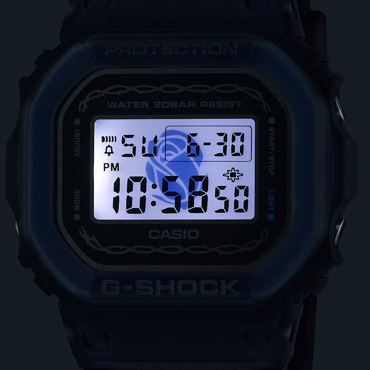 Мужские часы G-Shock. Синий цвет символизирует чудеса и сбывшиеся мечты. Противоударный корпус защищает механизм от ударов и вибрации. Циферблат подсвечивается светодиодом. Послесвечение. Цвет подсветки: белый. При активации подсветки на циферблате появляется изображение розы. Световая индикация сигнала. Типы сигналов: ежедневный, ежемесячный, каждый день определенного месяца, на определенную дату.