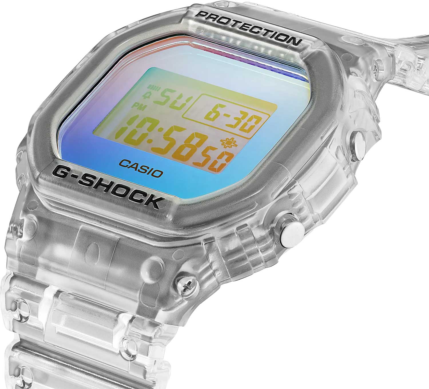 Стильные часы от Casio идеально подходят для тех, кто предпочитает спортивный стиль, но при этом остается в тренде. Наручные мужские часы G-Shock. Новая прозрачная модель часов в серии DW-5600. Противоударный корпус защищает механизм от ударов и вибрации.