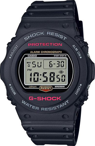 Перед вами релиз ретро-серии DW-5700, которая впервые появилась на свет более 30 лет назад. Противоударные функциональные часы подчеркнут активную жизненную позицию своего обладателя. G-Shock. Противоударный корпус защищает механизм от ударов и вибрации. Электролюминесцентная подсветка освещает весь циферблат, после отпускания кнопки свечение продолжается еще некоторое время. 12-ти и 24-х часовой формат времени. Секундомер с двумя точностями показаний: 1/100с (до 1ч) и 1с (после 1ч) и временем измерения 24ч. Сплит-хронограф. Таймер обратного отсчета от 1мин до 24ч с автоповтором. Типы сигналов: ежедневный, ежемесячный, каждый день определенного месяца, на определенную дату. Световая индикация сигнала.