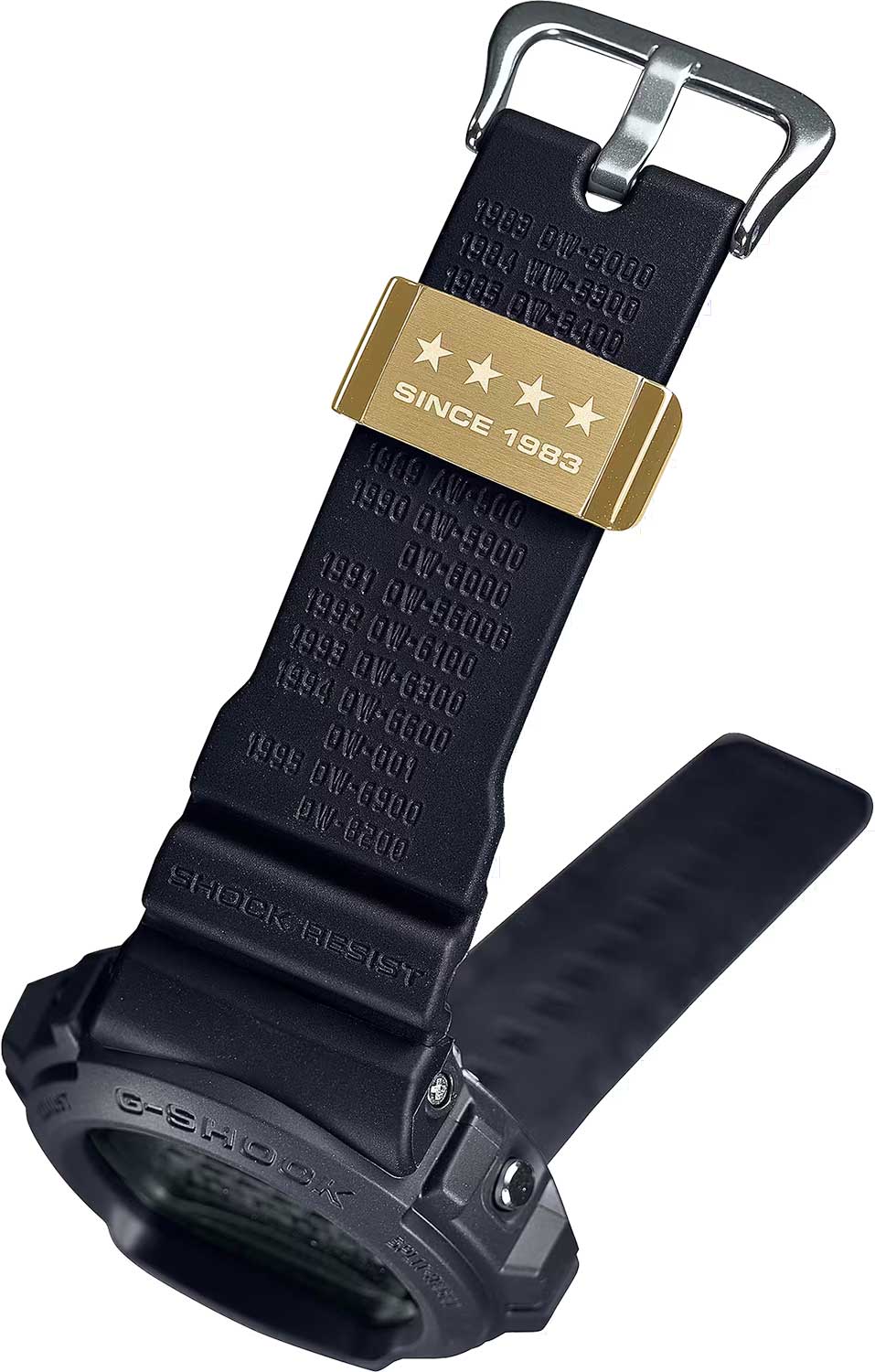 • На ремешке путем горячей штамповки нанесены года и модели, начиная с самых первых G-SHOCK выпущенных в 1983 году. Классическая застежка.