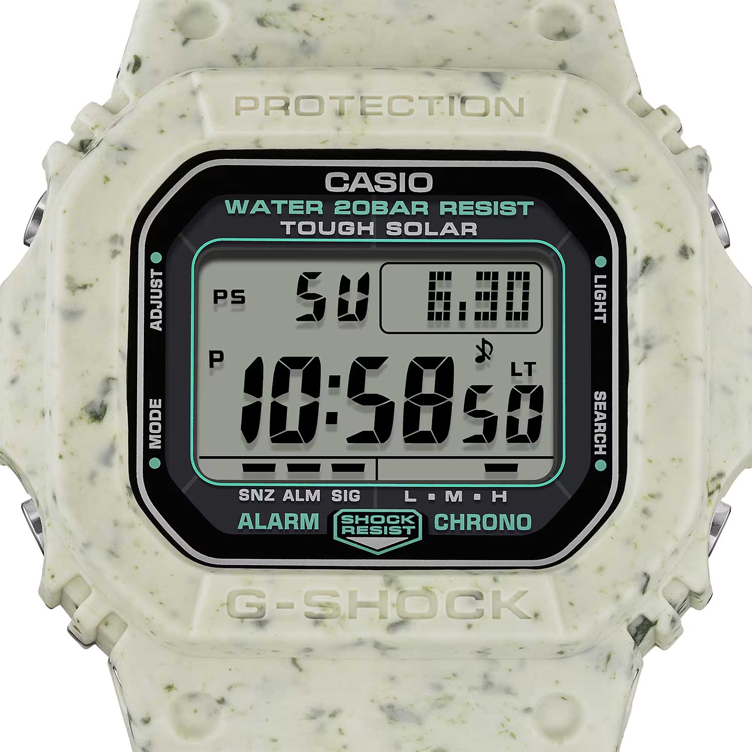 G-Shock. Мужские часы. Корпус и ремешок изготовлены из отходов пластика, который использовался при изготовлении других моделей G-Shock. Благодаря этому получается уникальный красочный узор.