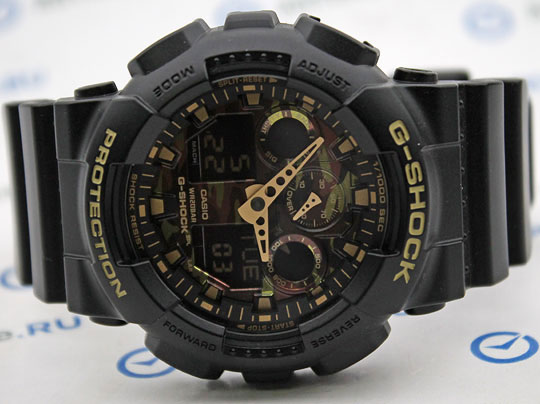 Часы с камуфляжным циферблатом становится все более популярными в дизайне модных брендов. G-Classic. Циферблат подсвечивается светодиодом, функция автоподсветки освещает циферблат при повороте часов к лицу. Противоударный корпус защищает механизм от ударов и вибрации. Защищены от магнитных полей. Секундомер с точностью показаний 1/1000с и временем измерения 100ч. Расчет скорости по выбранной дистанции. Сплит-хронограф. Таймер обратного отсчета от 1мин до 24ч с автоповтором. Мировое время. 12-ти и 24-х часовой формат времени.