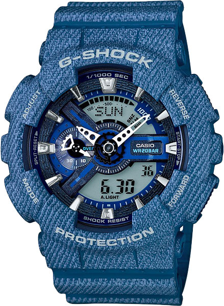 Новая серия ударопрочных часов Denim Color в джинсовом исполнении для любителей экстремальных приключений.G-Classic Denim'd Color.Противоударный корпус защищает механизм от ударов и вибрации. Защищены от магнитных полей. Светодиодная автоматическая супер-подсветка. При движении руки дисплей освещается ярким светом. Мировое время – 48 городов (29 часовых поясов), всемирное координированное время (UTC). Функция включения/отключения летнего времени. 12-ти и 24-х часовой формат времени. Секундомер с точностью показаний 1/1000с и временем измерения 100ч. Расчет скорости по выбранной дистанции. Сплит-хронограф.Таймер