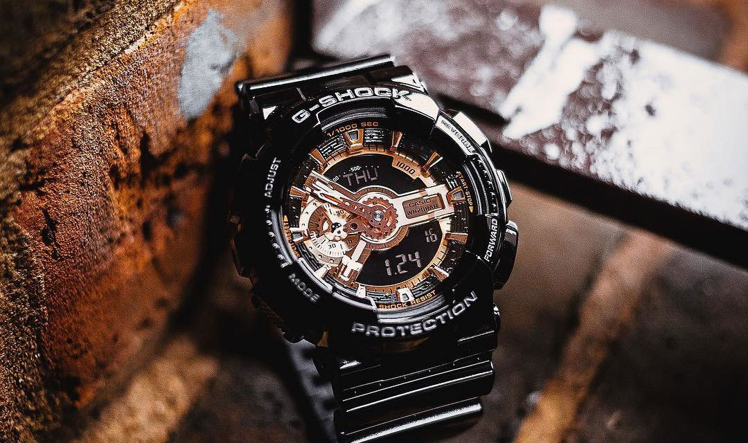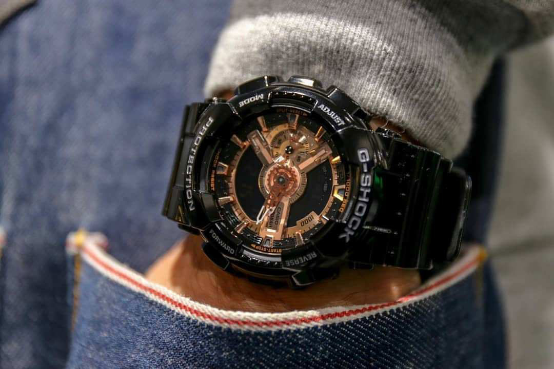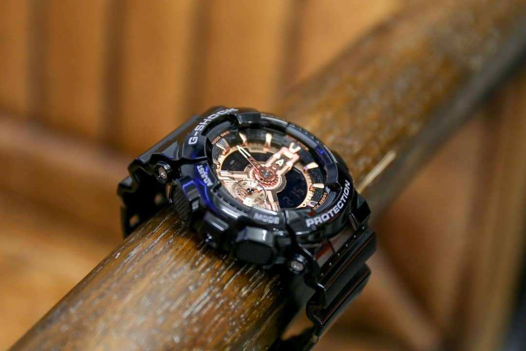 Массивные противоударные часы в новой цветовой гамме выбирают мужчины, которые живут активной жизнью. G-Shock. Новый вариант модной расцветки модели GA-110, в ней циферблат цвета розового золота идеально дополняет черный ремешок и корпус. Светодиодная автоподсветка - при повороте часов в сторону лица подсветка дисплея осуществляется автоматически. Противоударный корпус защищает механизм от ударов и вибрации. Защищены от магнитных полей. 12-ти и 24-х часовой формат времени. Секундомер с точностью показаний 1/1000с и временем измерения 100ч. Расчет скорости по выбранной дистанции. Сплит-хронограф. Таймер обратного отсчета от 1мин до 24ч с автоповтором. Мировое время.