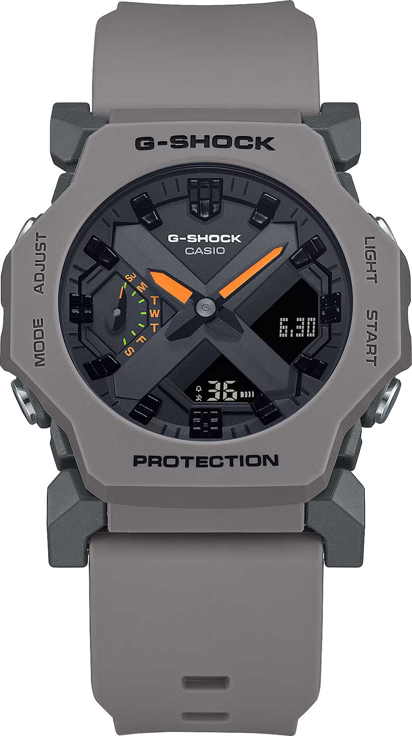 Мужские часы G-Shock.Противоударный корпус защищает механизм от ударов и вибрации. Двойная подcветка: циферблат и ЖК-дисплеи подсвечиваются светодиодом, благодаря наличию функции задержки, после отпускания кнопки освещение горит еще несколько секунд. Настраиваемое послесвечение 1,5 или 3сек. Цвет подсветки: белый.
