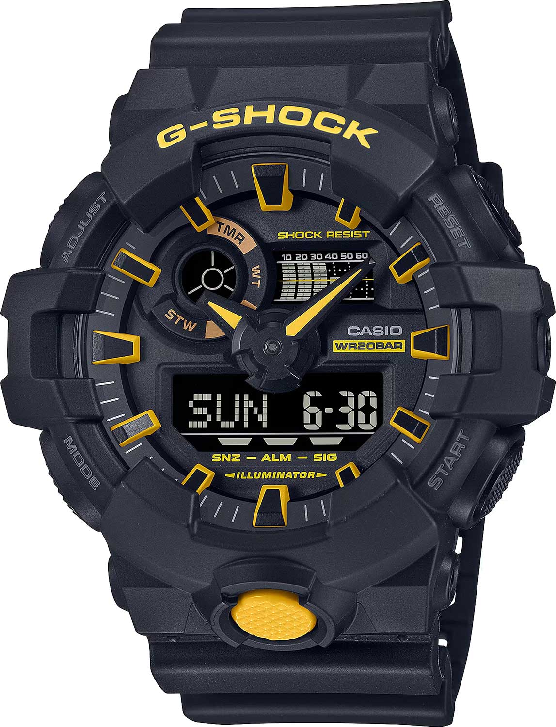 G-Shock. Мужские часы с ярко-желтыми акцентами на корпусе и циферблате, которые вдохновлены аварийно-спасательными знаками и знаками безопасности. Противоударный корпус защищает механизм от ударов и вибрации.