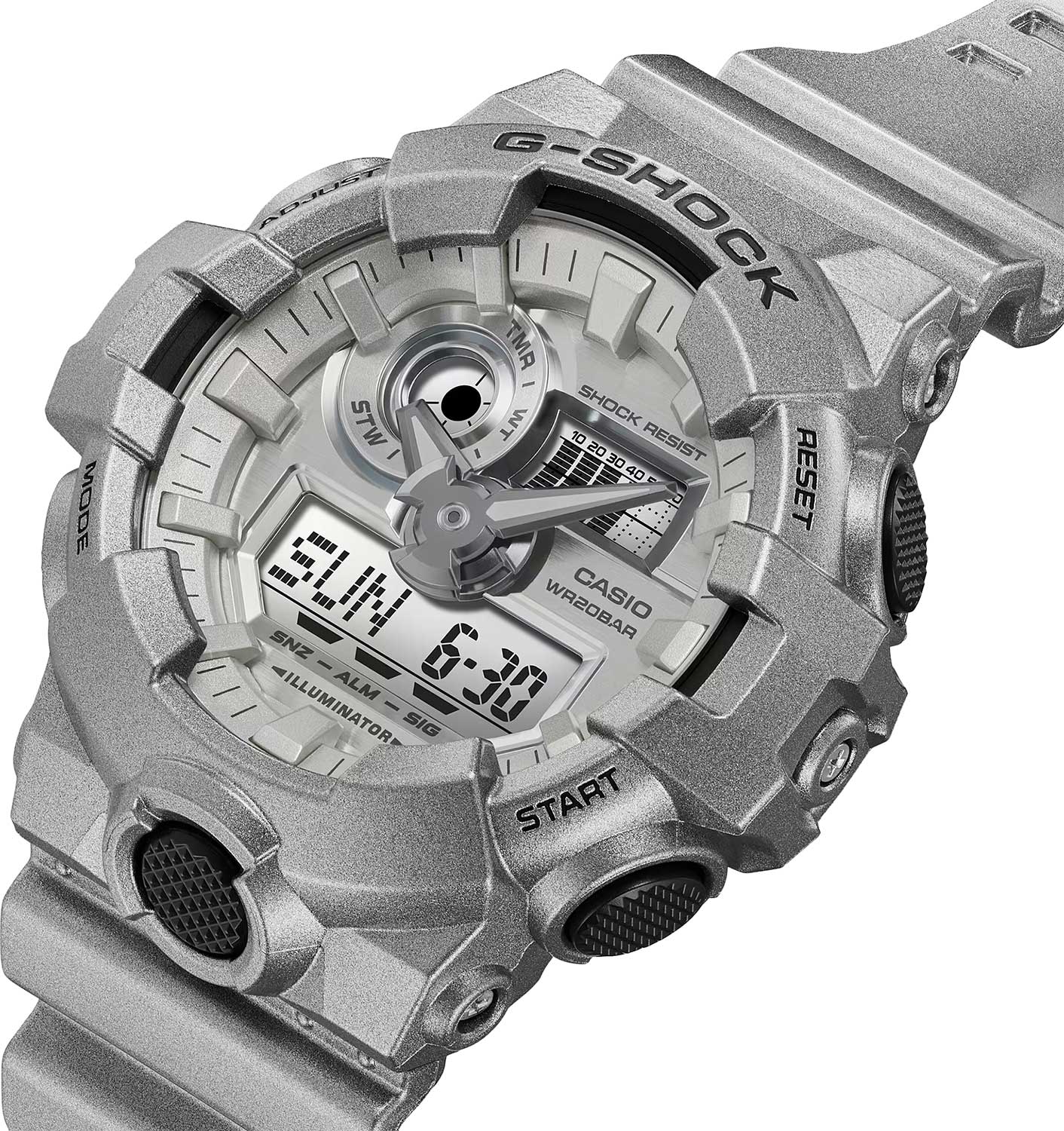 Благодаря яркому дизайну и крупным стрелкам, часы имеют не только отличный внешний вид, но и обладают действительно удобной индикацией времени.Мужские часы G-Shock.Противоударный корпус защищает механизм от ударов и вибрации. Циферблат подсвечивается ярким светодиодом. В часах есть функция послесвечения - подсветка продолжает работать несколько секунд после того как кнопка подсветки была отпущена. Длительность свечения 1,5 или 3 сек. Цвет подсветки - белый.