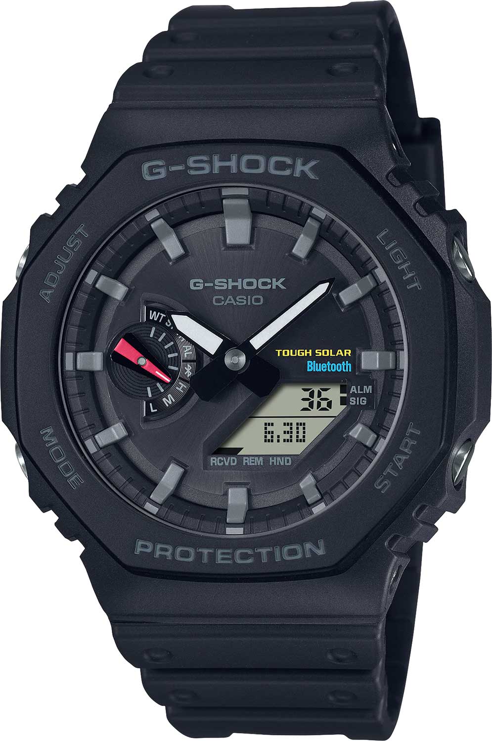 Легендарные часы Casio стали ещё более функциональными и теперь подарят вам массу положительных эмоций.G-Shock. Питание от солнечной энергии Tough Solar - солнечные батарейки большой мощности. Индикатор заряда батареи. Функция автоматического сохранения энергии. Время работы аккумулятора без подзарядки - 7 месяцев, при включенной функции сохранения энергии - 18 месяцев. Структура Carbon Core Guard. Противоударный пластиковый корпус с карбоновыми волокнами более прочный и, в то же время, более легкий. Этот же материал защищает внутренний модуль от повреждений и деформаций при ударах. Двойная подcветка: циферблат и ЖК-дисплеи подсвечиваются светодиодом, благодаря наличию функции задержки, после отпускания кнопки освещение горит еще несколько секунд. Настраиваемое послесвечение 1,5 или 3сек. Цвет подсветки: белый. Необритовое светонакопительное покрытие обеспечивает длительное послесвечение в темноте даже после кратковременного нахождения на свету. 12-ти и 24-х часовой формат времени. Секундомер с двумя точностями показаний: 1/100с (до 1ч) и 1с (после 1ч) и временем измерения 24ч. SPLIT-хронограф.Таймер обратного отсчета от 1с до 1ч. Мировое время – 38 городов (38 часовых поясов), всемирное координированное время (UTC). Автоматический переход на зимнее и летнее время, возможность включения/отключения данной функции. Переключение между домашним и мировым временем. Беспроводная технология Bluetooth® со сверхнизким потреблением энергии для синхронизации со смартфоном. При подключении к смартфону часы автоматически корректируют текущее время, в том числе переход на зимнее/летнее время, копируют настройки мирового времени более чем для 300 городов. Функции поиска телефона, отключения/включения звука и перемещения стрелок для беспрепятственного просмотра информации на цифровых дисплеях. Отображение дней недели на шести языках. Смена отображения даты/месяца. Циферблат с метками в виде штрихов выполнен по технологии Sunray (солнечные лучи). Стальная задняя крышка крепится на 4-х винтах. Водонепроницаемость 20 Бар в соответствии с ISO 2281. Ремешок из полимерного материала с классической застежкой и системой быстрой замены.