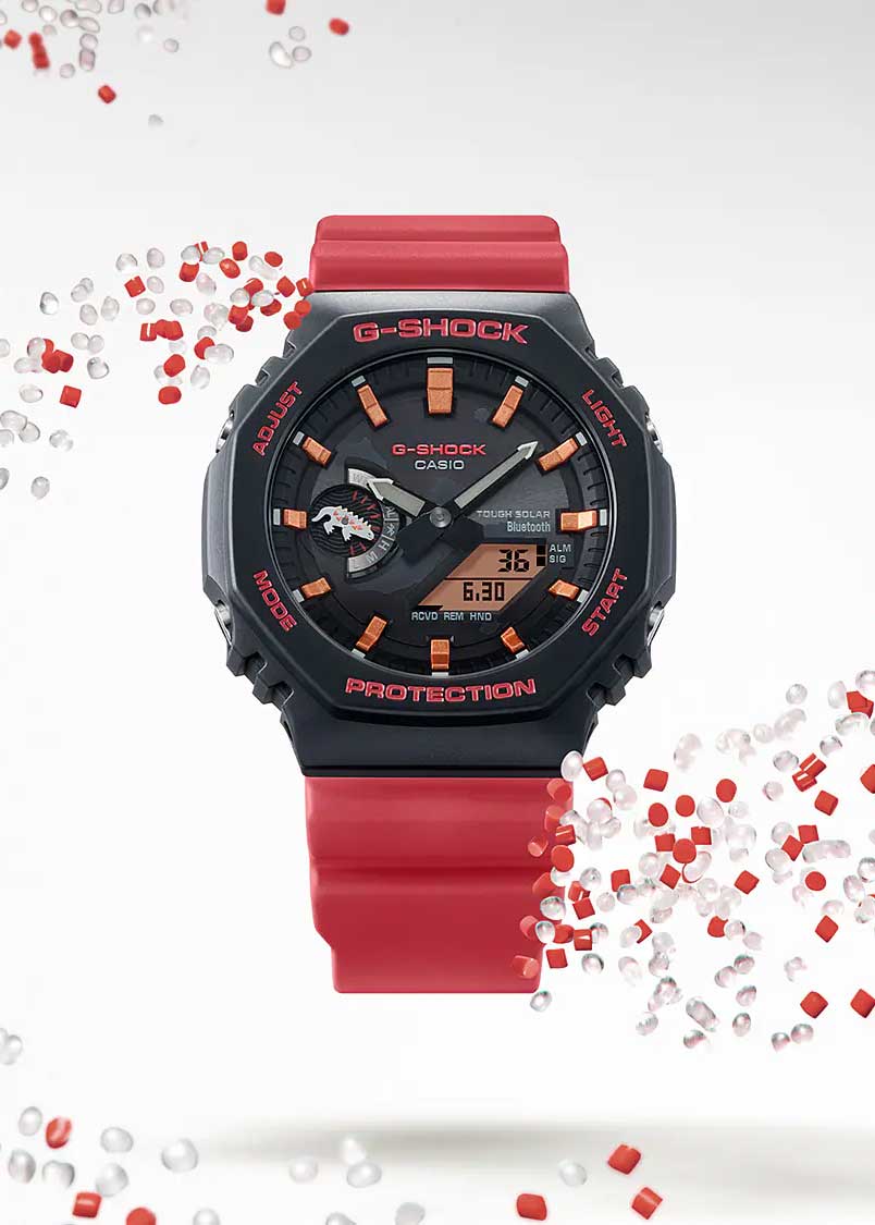 G-Shock x Charles Darwin Foundation. Мужские часы. Модель создана в коллаборации с фондом Чарльза Дарвина (Charles Darwin Foundation), который занимается охраной окружающей среды на Галапагосских островах. Дизайн часов вдохновлен галапагосской морской игуаной. Стрелка в положении 9 часов выполнена в виде игуаны.