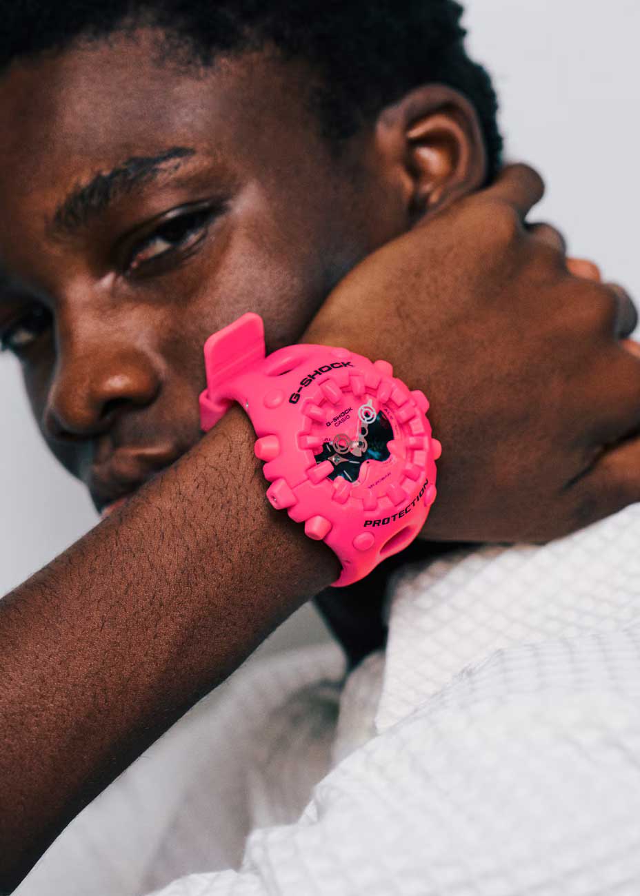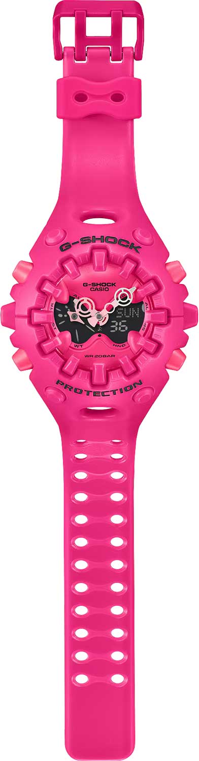 Новинка в серии G-Shock с ярким футуристичным дизайном. Система собственной разработки Casio Shock Release Hand, в которой стрелки не крепятся к валу напрямую, а крепятся с помощью магнитного поля, что позволяет эффективно поглощать и рассеивать удары. Противоударный корпус защищает механизм от ударов и вибрации.